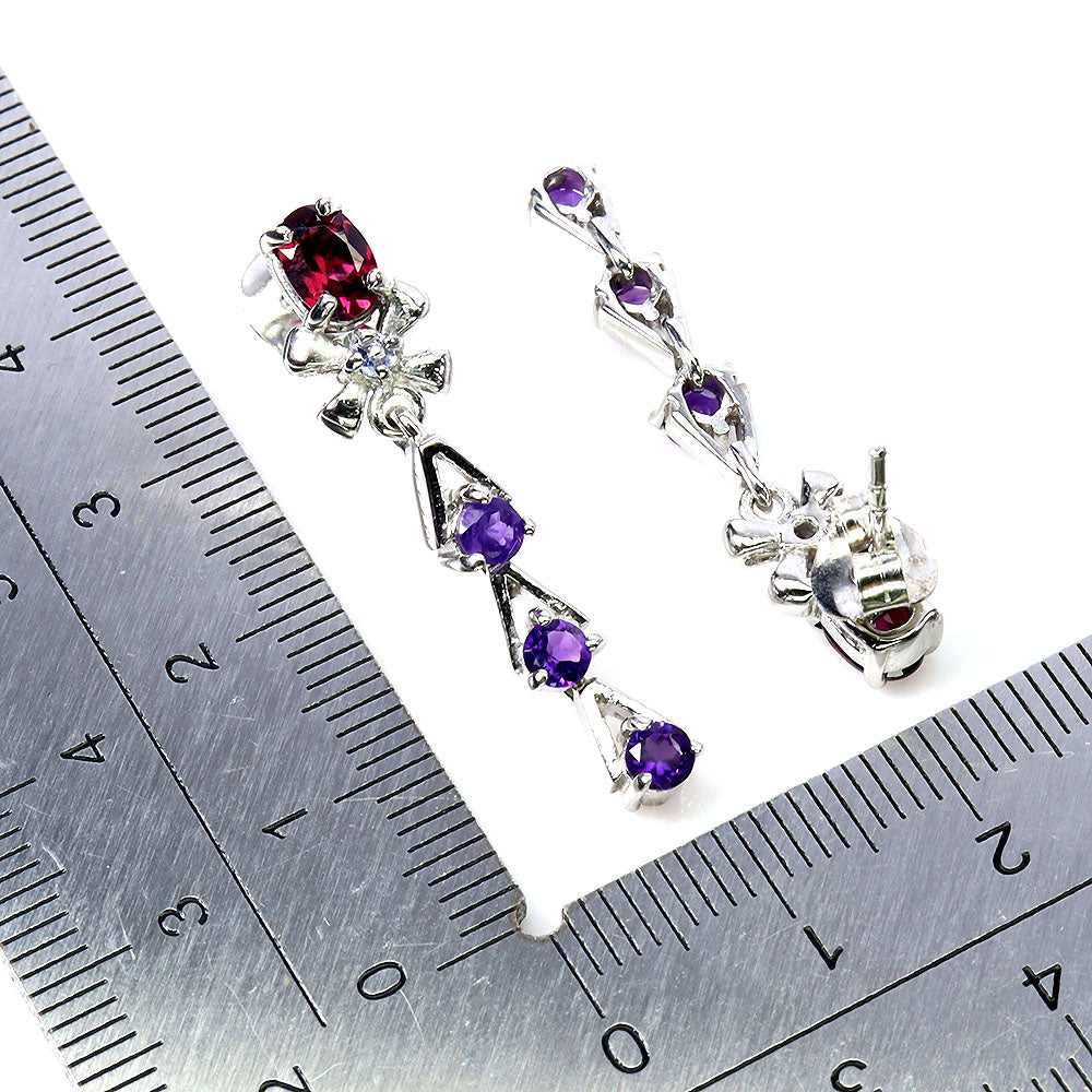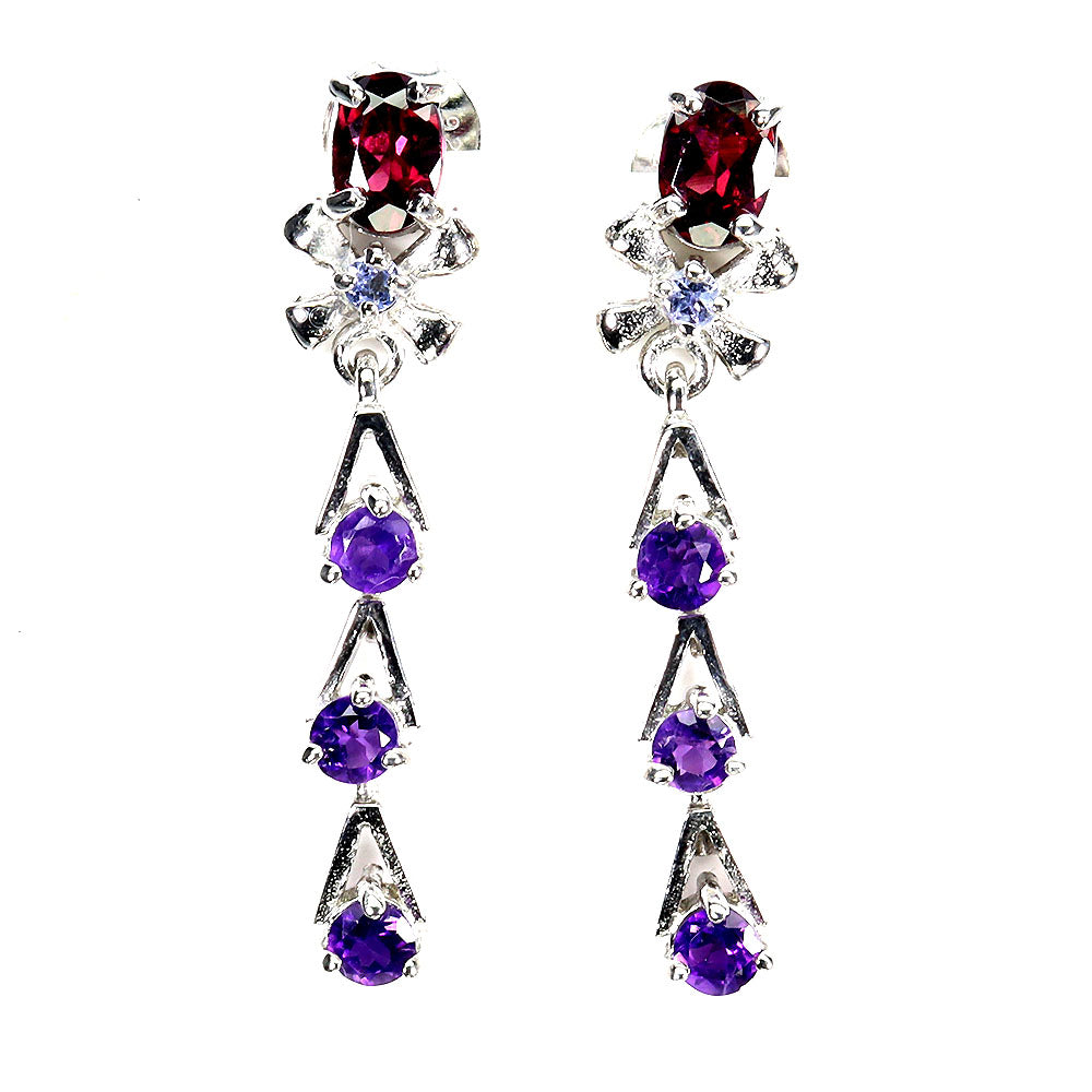 925 Sterling Silver Earrings Oval Rhodolite Amethyst Tanzanite Gemstone Jewelry