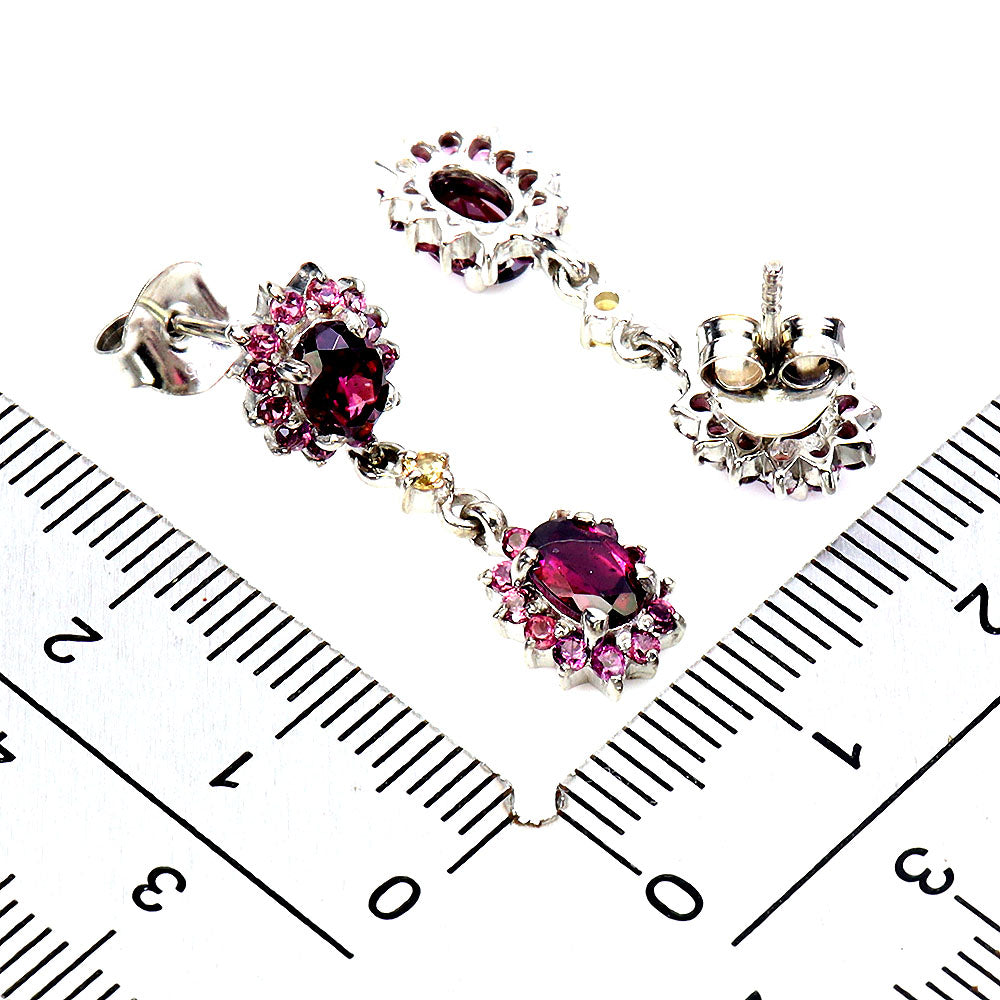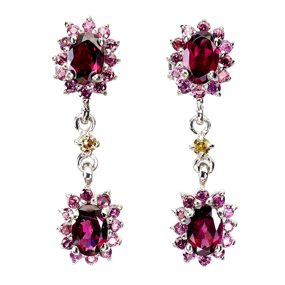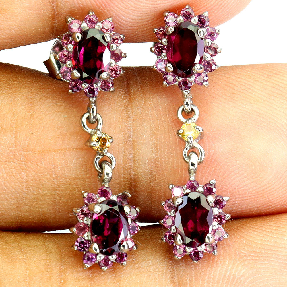 925 Sterling Silver Earrings Oval Rhodolite Garnet Sapphire Gemstone Jewelry