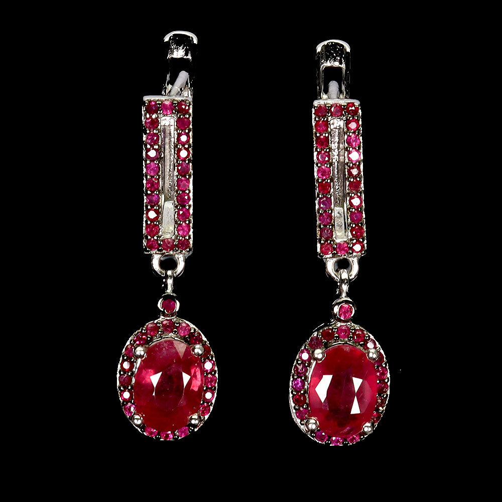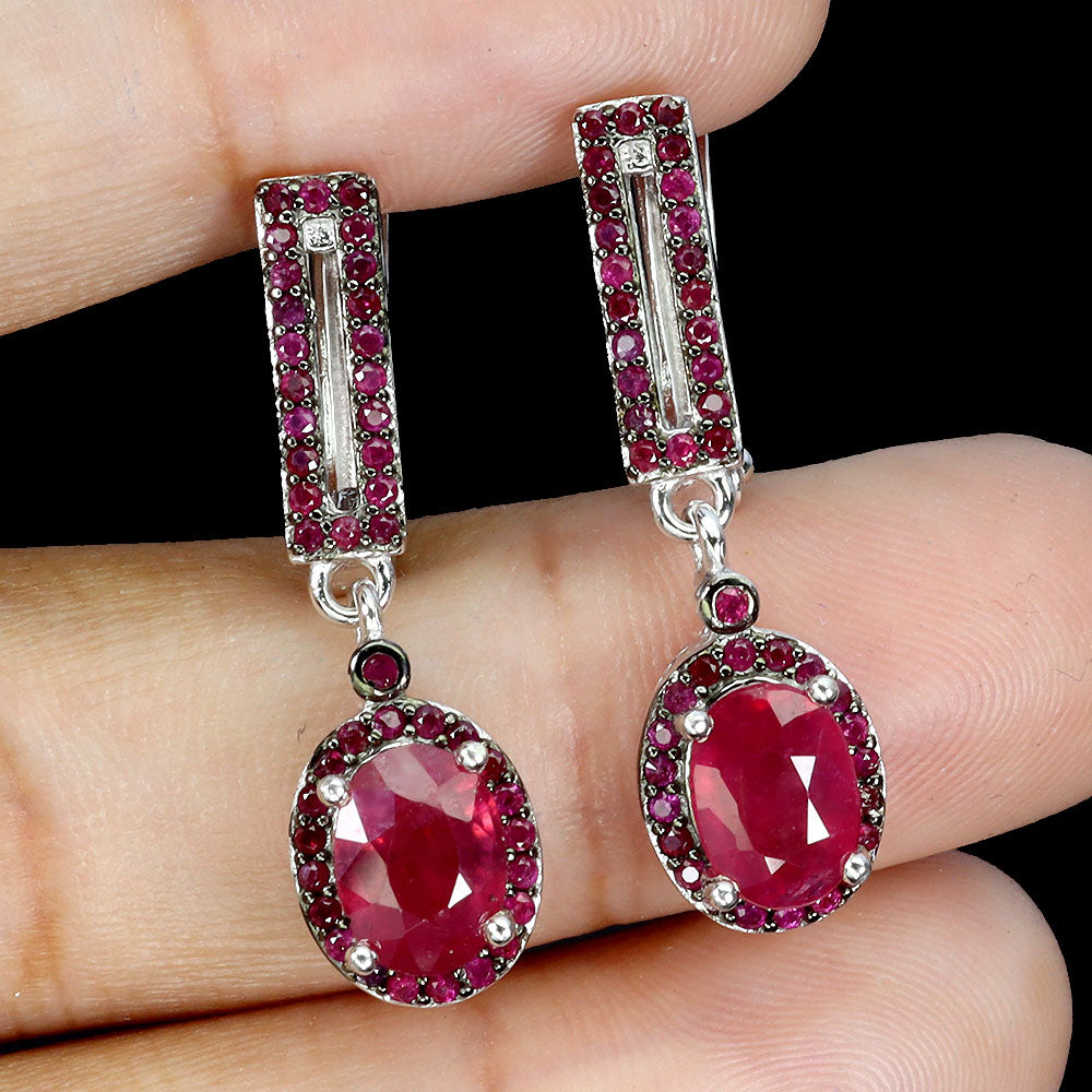 925 Sterling Silver Earrings Oval Ruby 7x5mm Ruby Myanmar Gemstone Jewelry