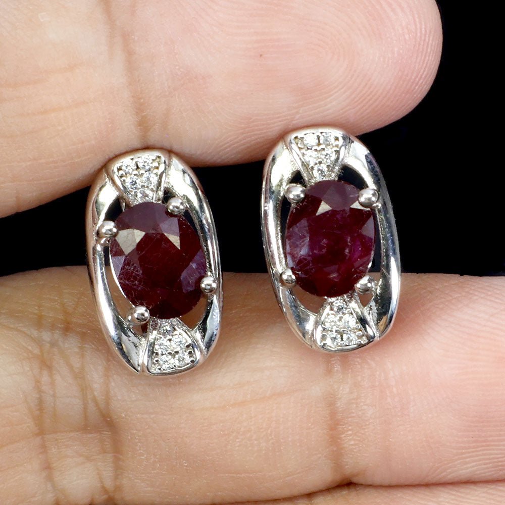 925 Sterling Silver Earrings Oval Ruby 8x6mm Natural Gemstone Jewelry