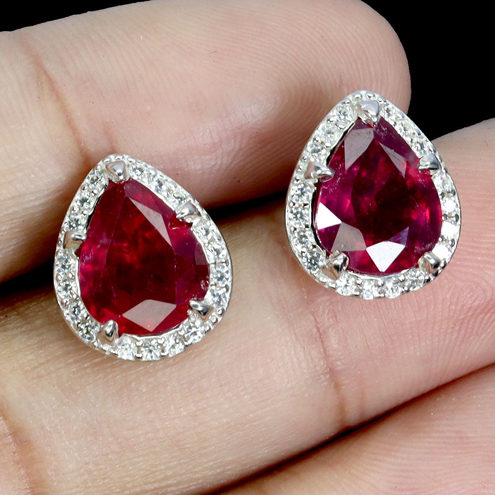 925 Sterling Silver Earrings Oval Ruby 9x7mm Natural Gemstone Jewelry