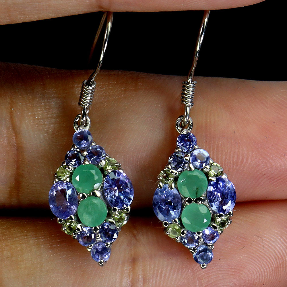 925 Sterling Silver Earrings Oval Tanzanite 4x3mm Emerald Gemstone Jewelry