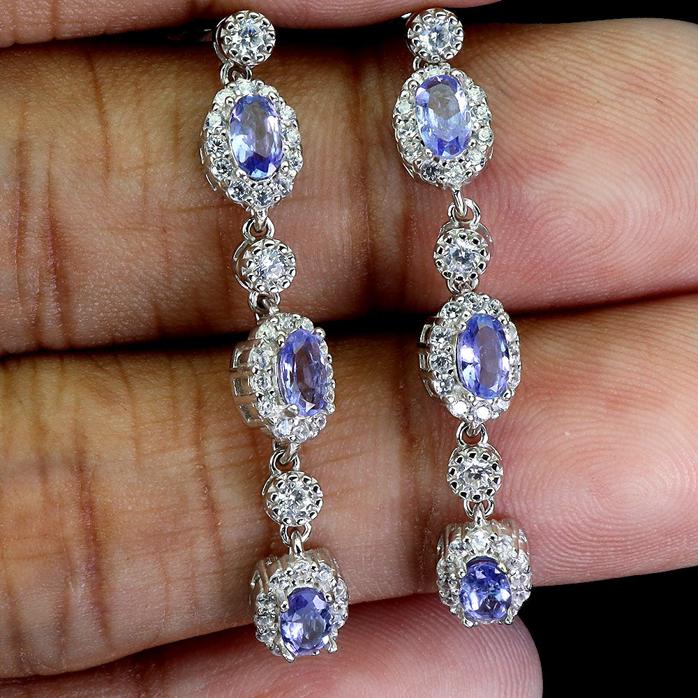 925 Sterling Silver Earrings Oval Tanzanite 5x3mm Natural Gemstone Jewelry