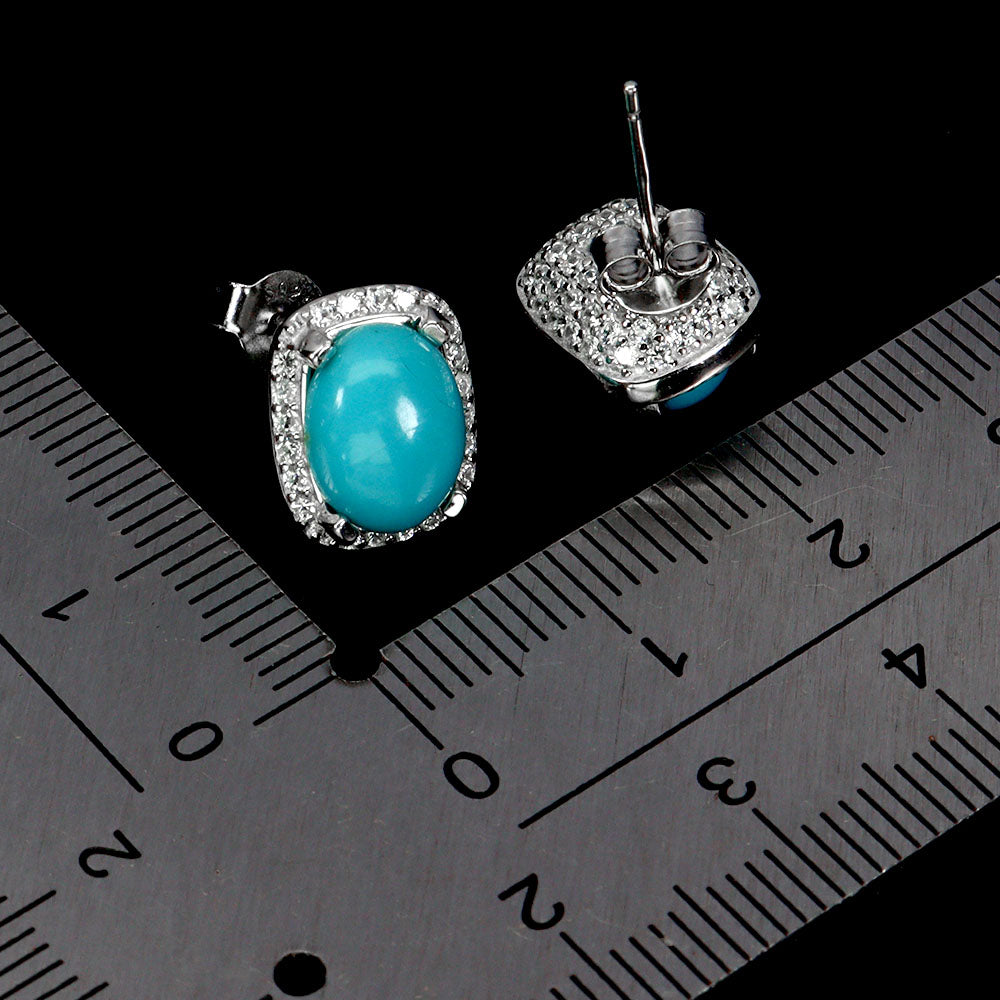 925 Sterling Silver Earrings Oval Turquoise 9x7mm Natural Gemstone Jewelry