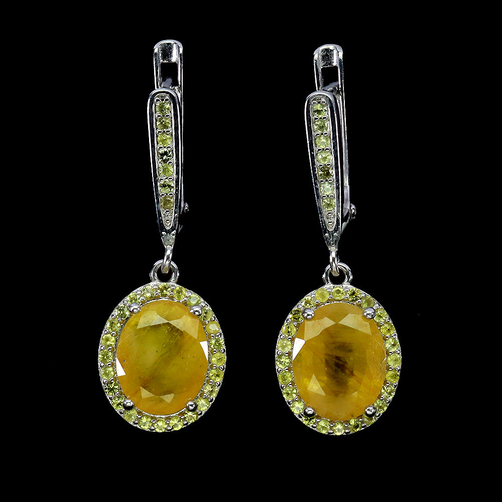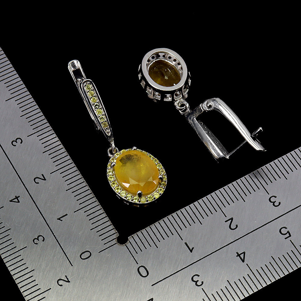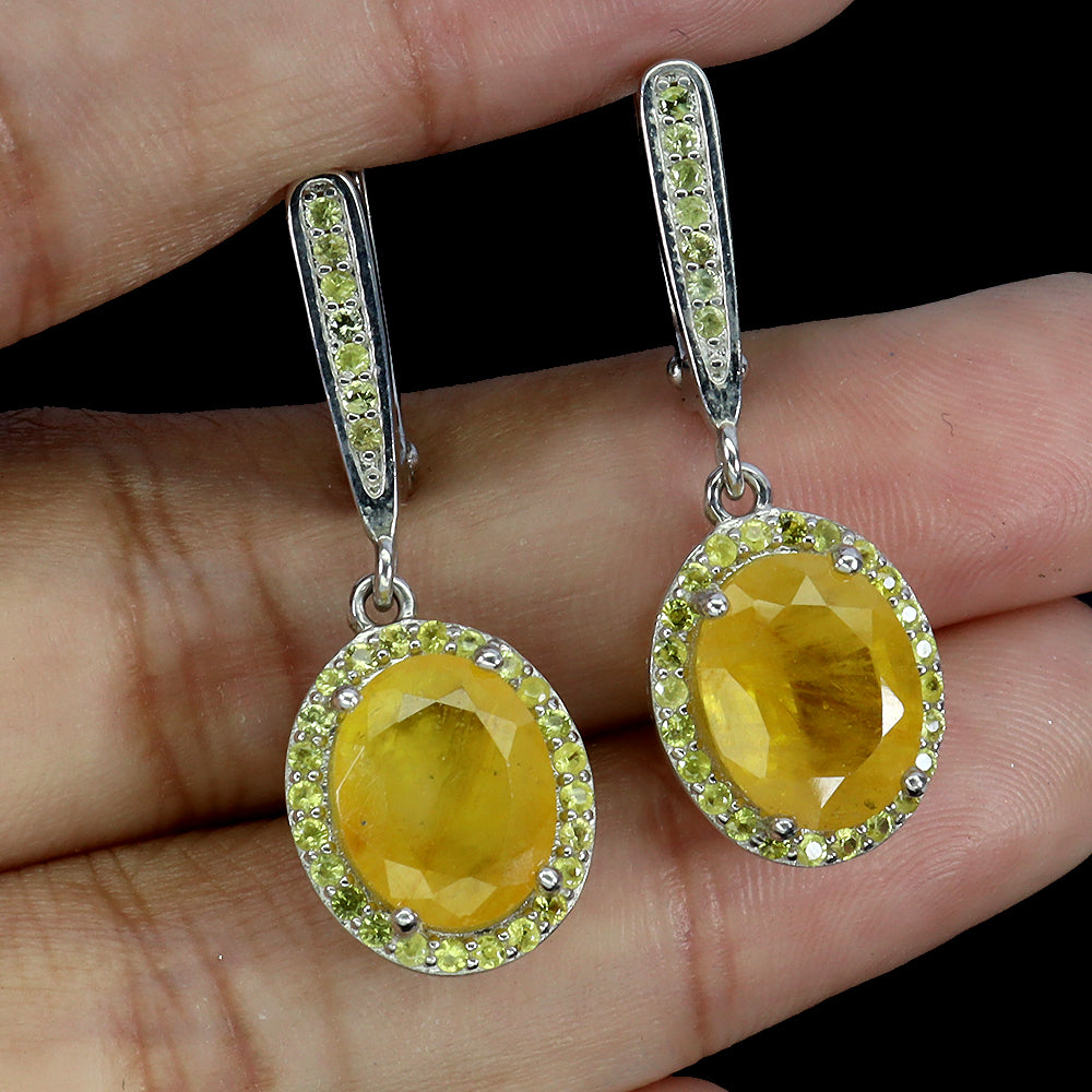 925 Sterling Silver Earrings Oval Yellow Sapphire 10x8mm Sapphire Gemstone