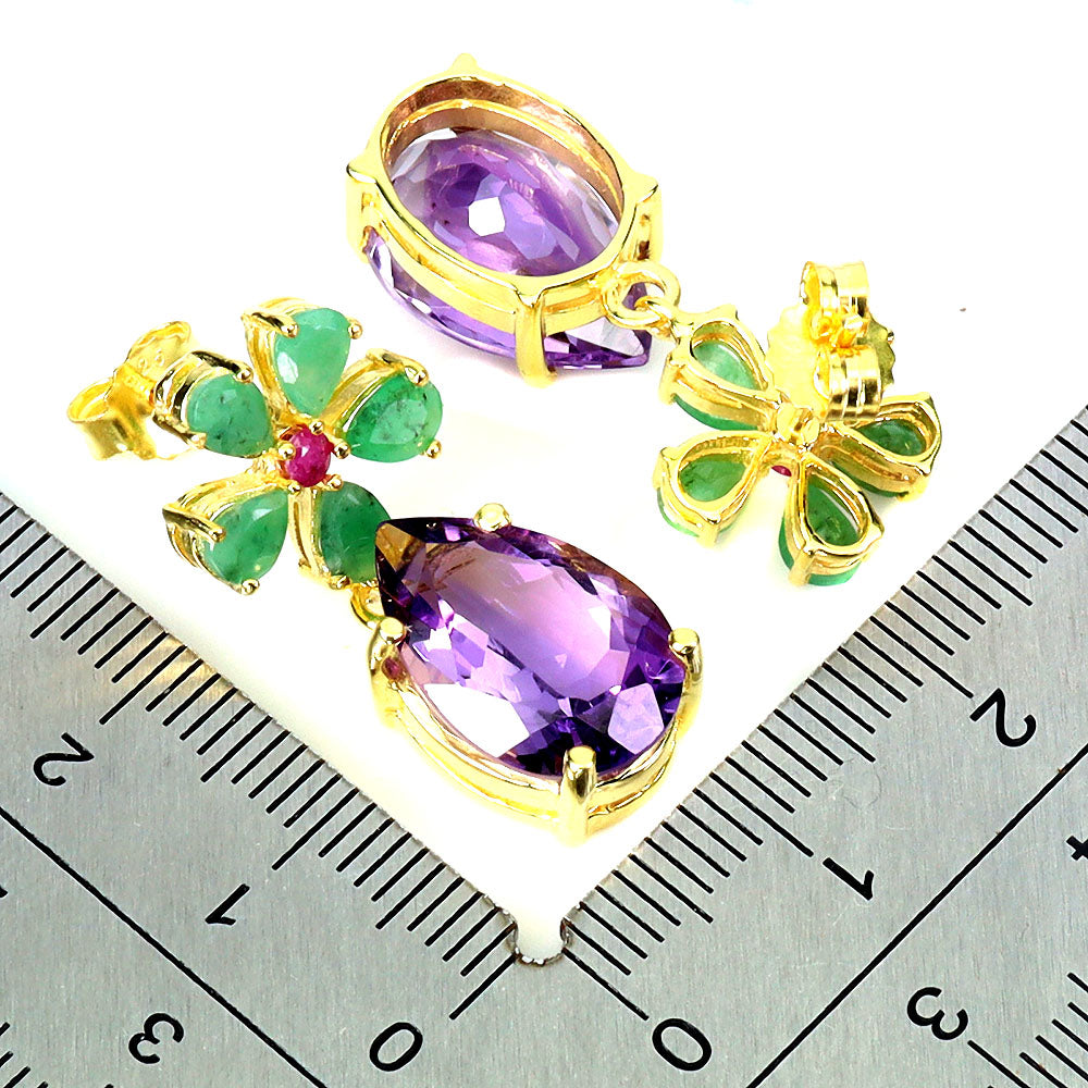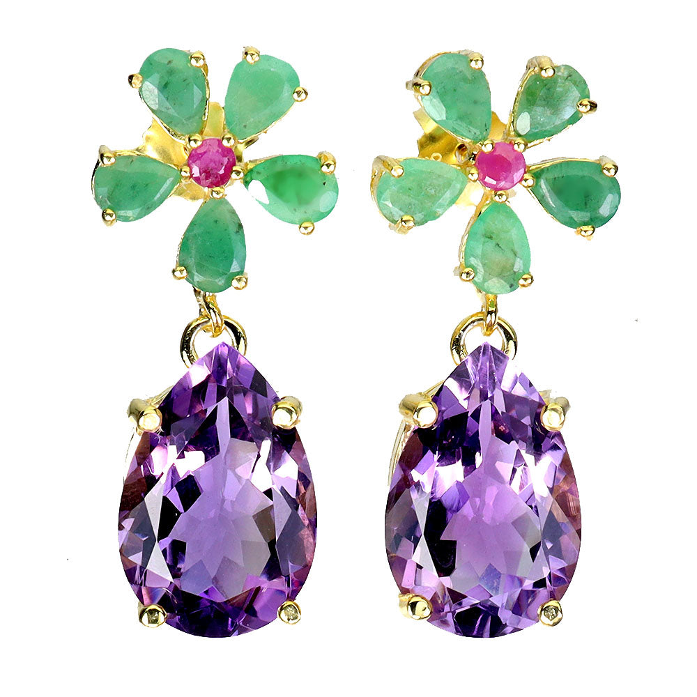 925 Sterling Silver Earrings Pear Amethyst 15x10mm Emerald Ruby Gemstone Jewelry