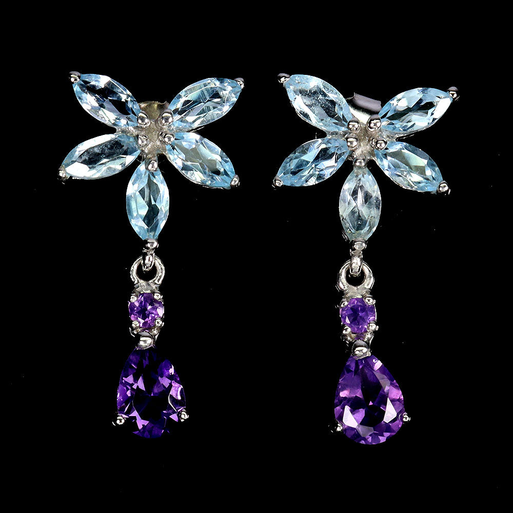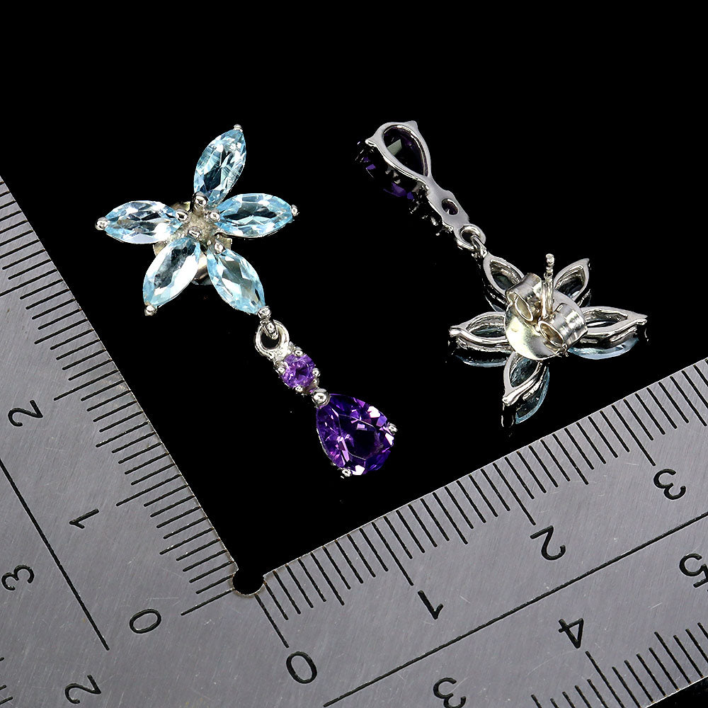 925 Sterling Silver Earrings Pear Amethyst 7x5mm Sky Blue Topaz Gemstone Jewelry