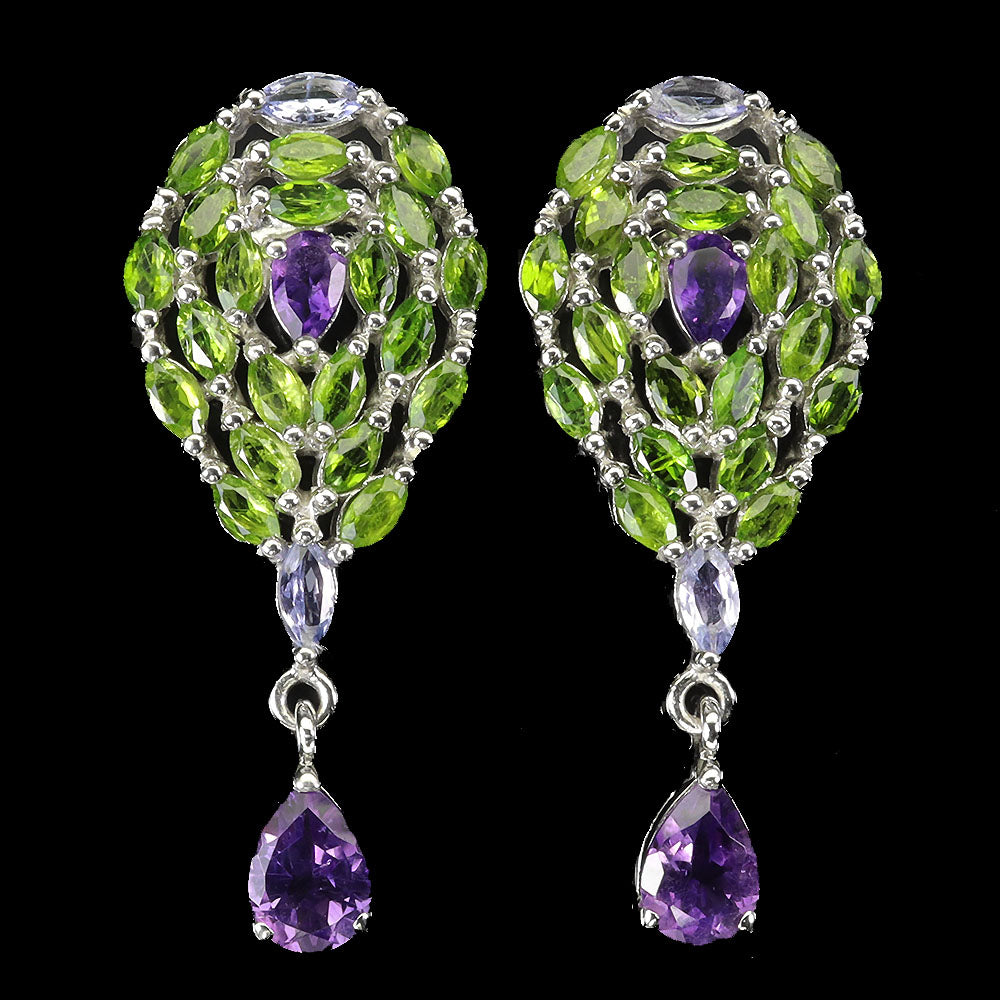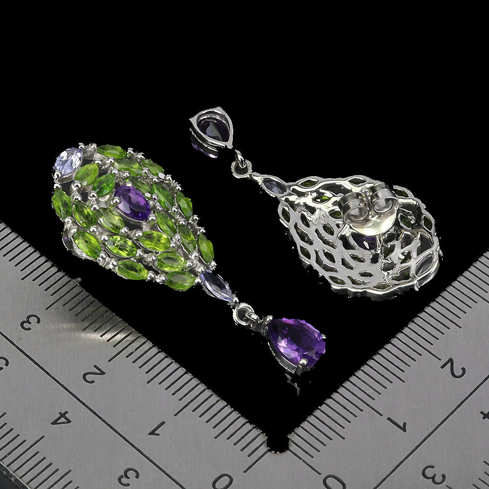 925 Sterling Silver Earrings Pear Amethyst Chrome Diopside Gemstone Jewelry