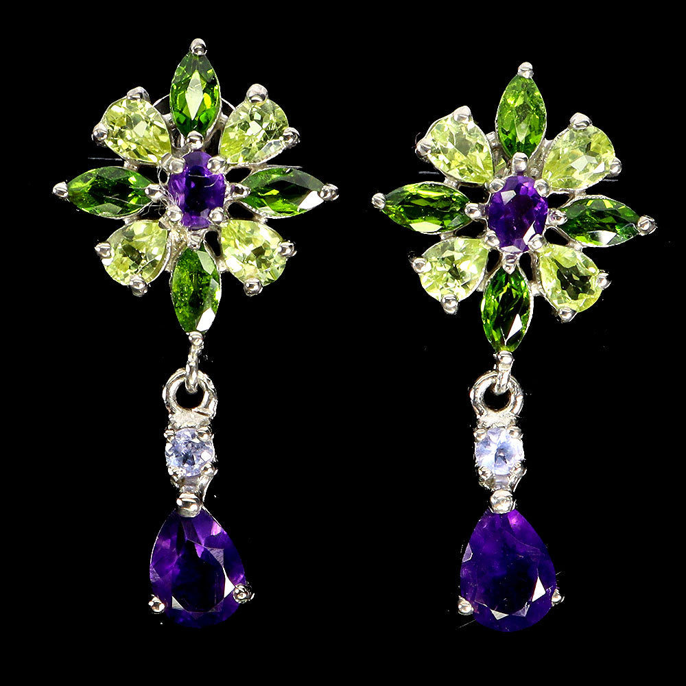 925 Sterling Silver Earrings Pear Amethyst Peridot Tanzanite Gemstone Jewelry