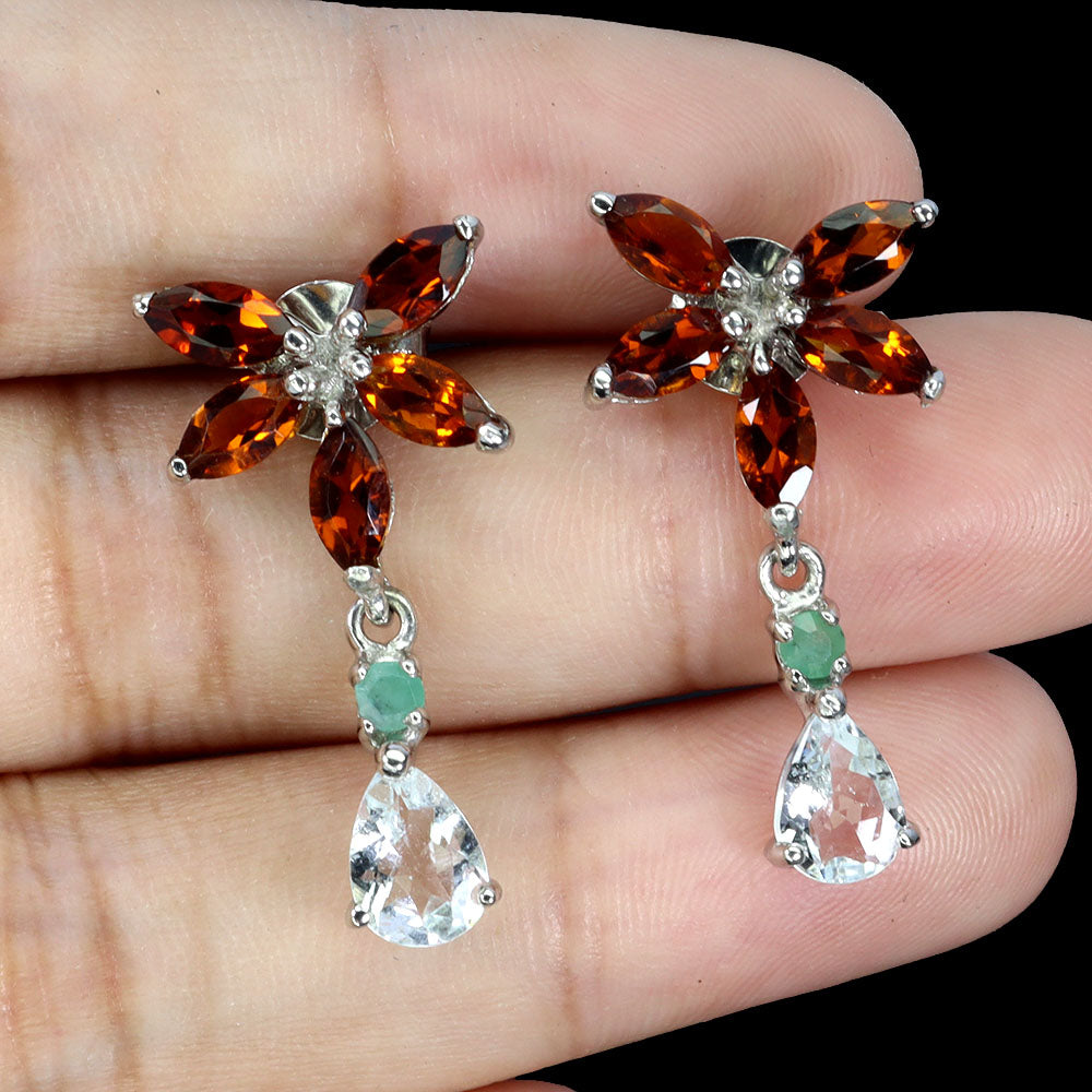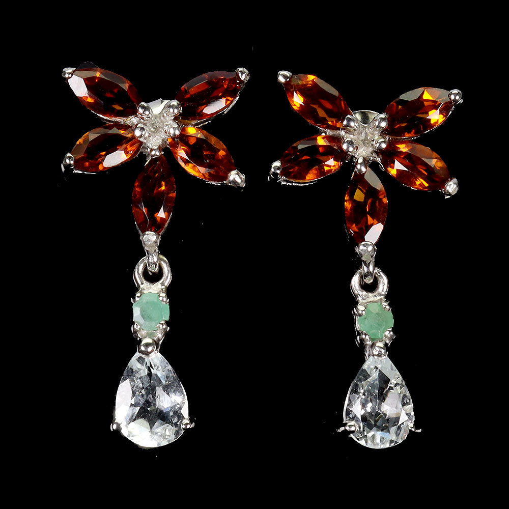 925 Sterling Silver Earrings Pear Aquamarine 7x5mm Citrine Gemstone Jewelry