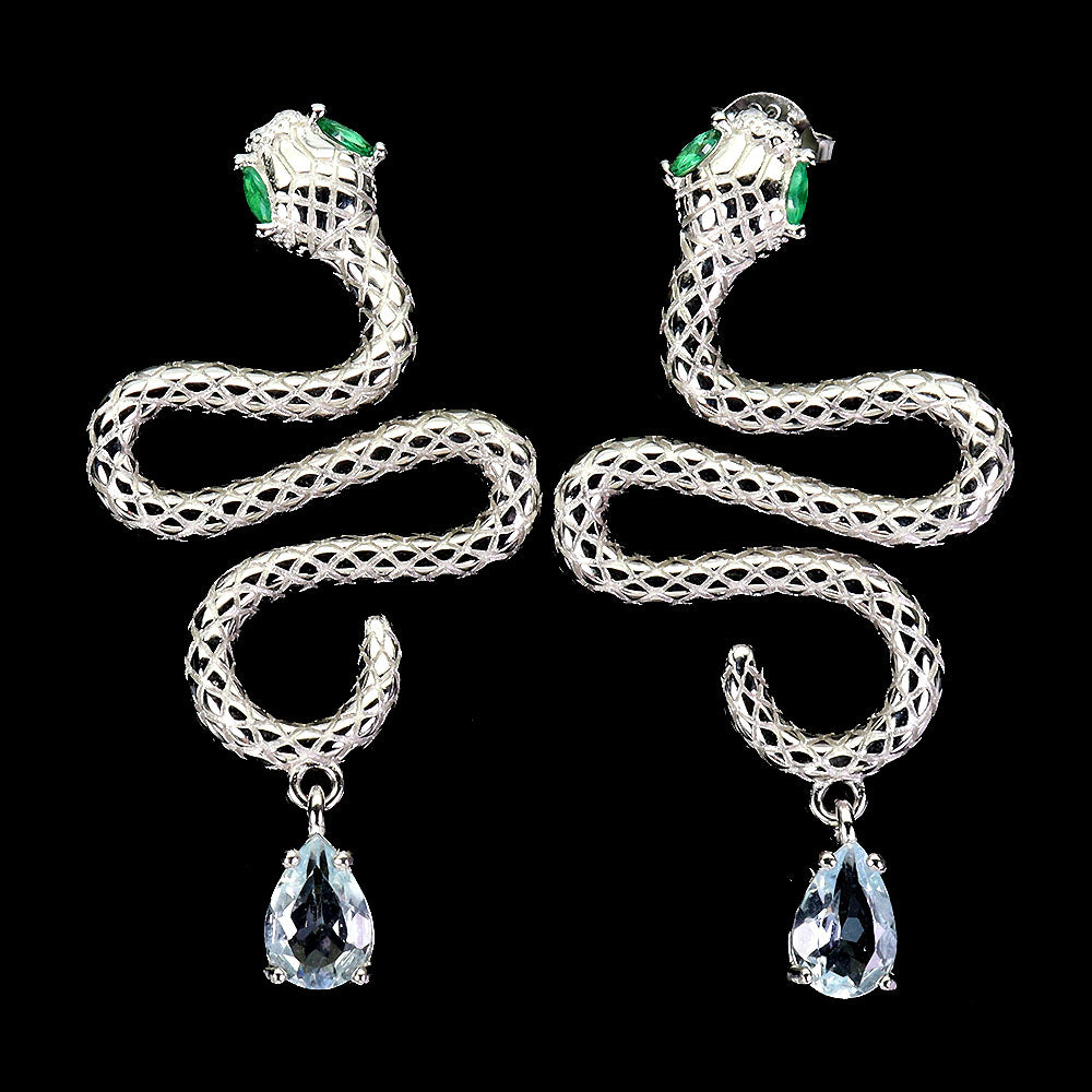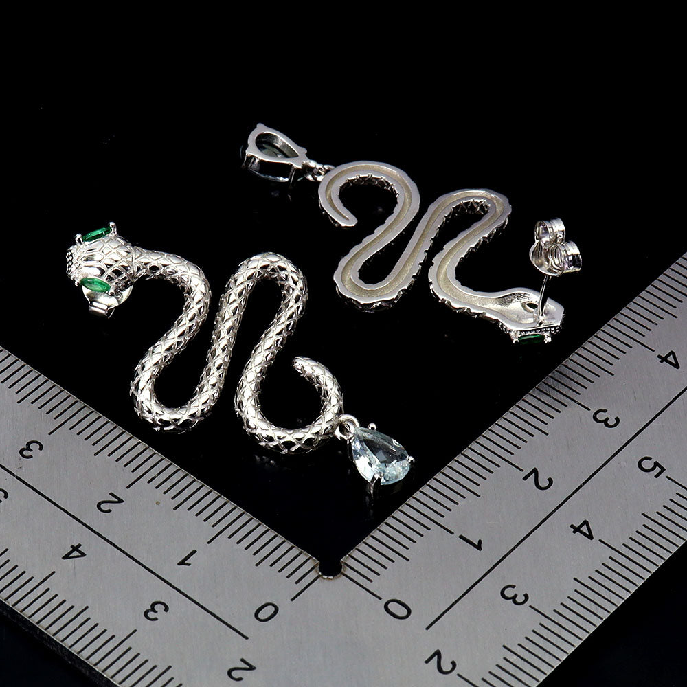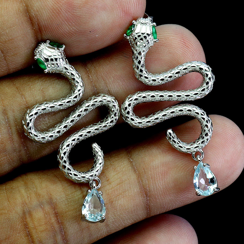 925 Sterling Silver Earrings Pear Aquamarine 7x5mm Cobra Gemstone Jewelry