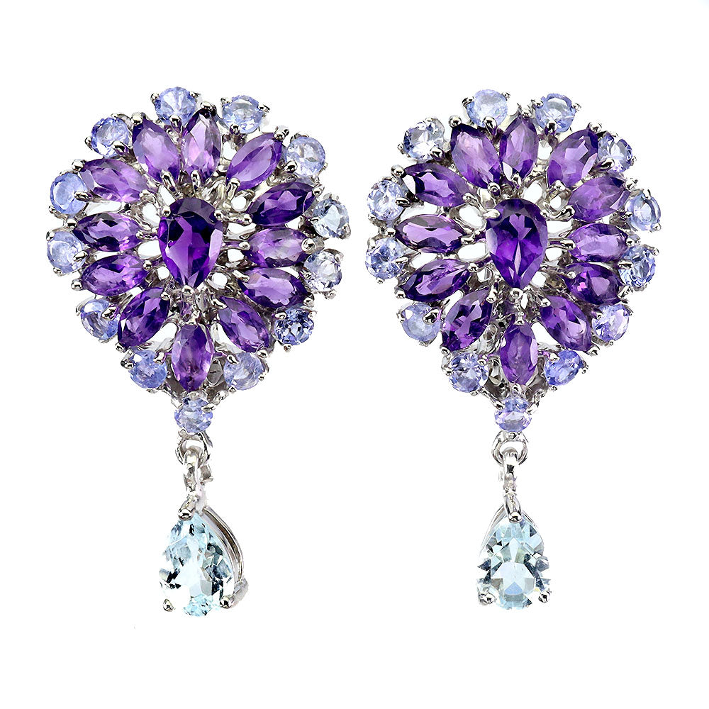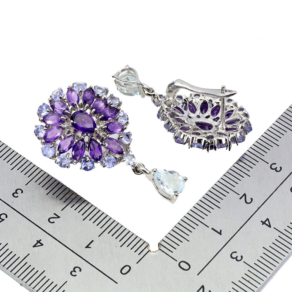 925 Sterling Silver Earrings Pear Aquamarine 7x5mm Tanzanite Gemstone Jewelry