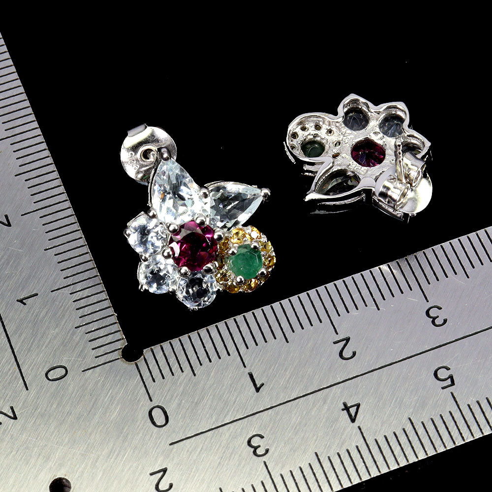 925 Sterling Silver Earrings Pear Aquamarine Emerald Garnet Sapphire Gemstone