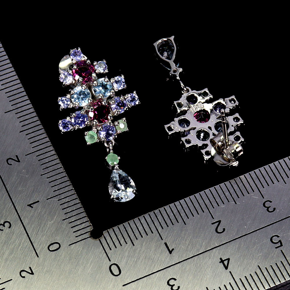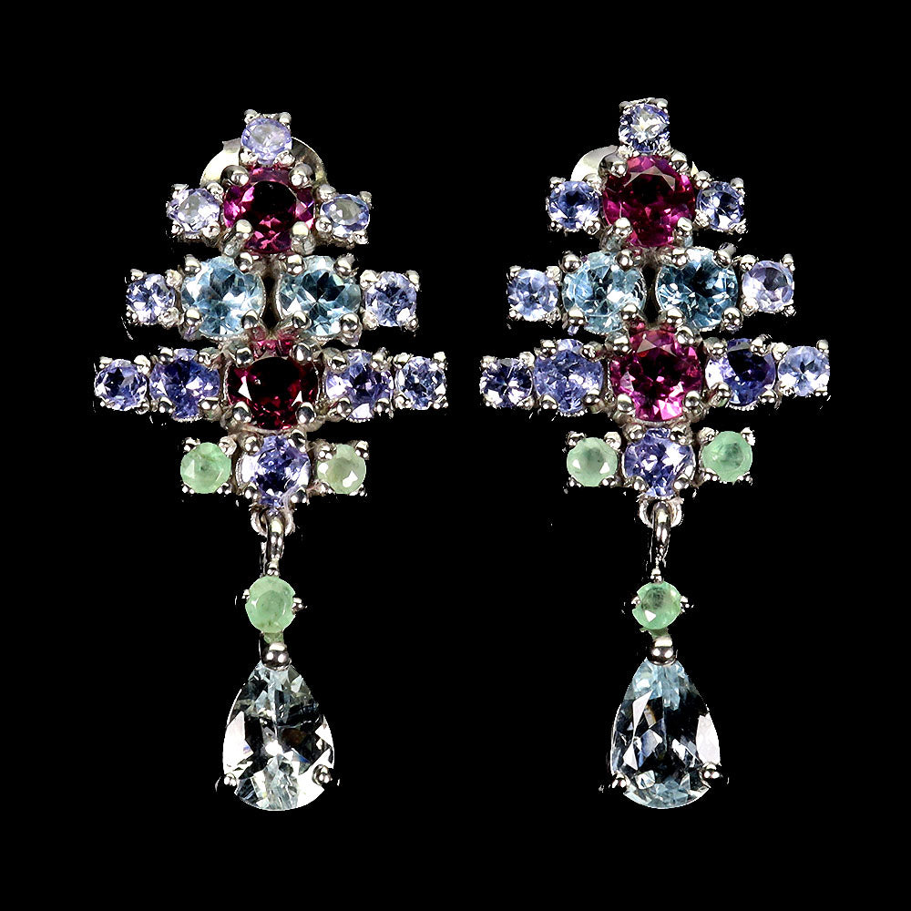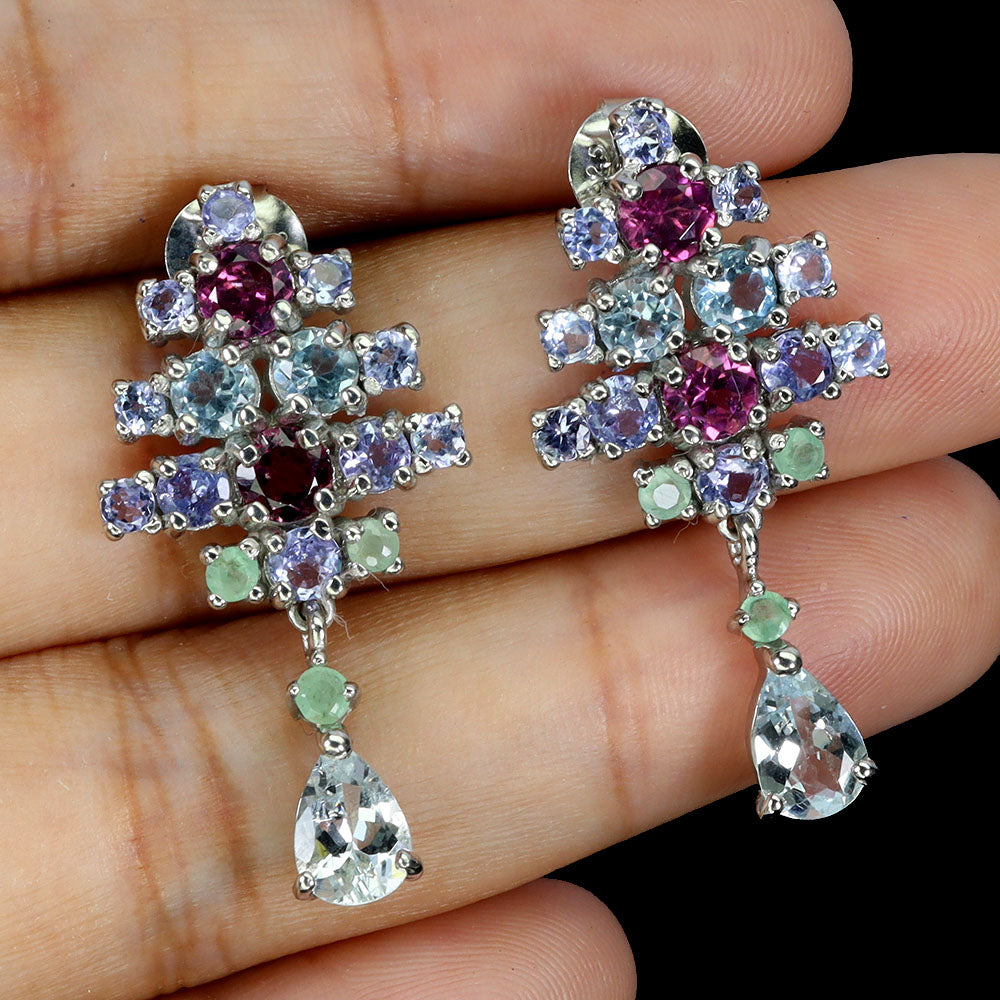 925 Sterling Silver Earrings Pear Aquamarine Emerald Tanzanite Gemstone Jewelry