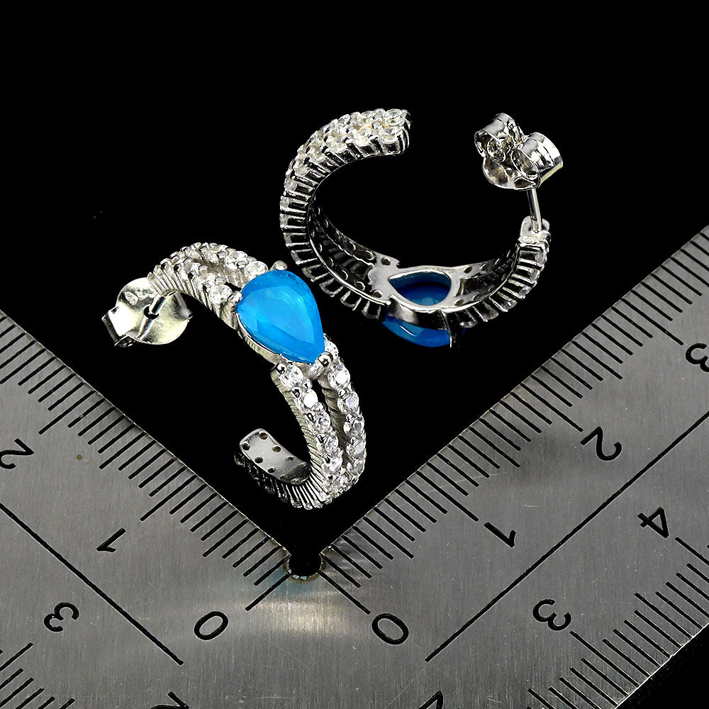 925 Sterling Silver Earrings Pear Blue Opal 7x5mm Natural Gemstone Jewelry