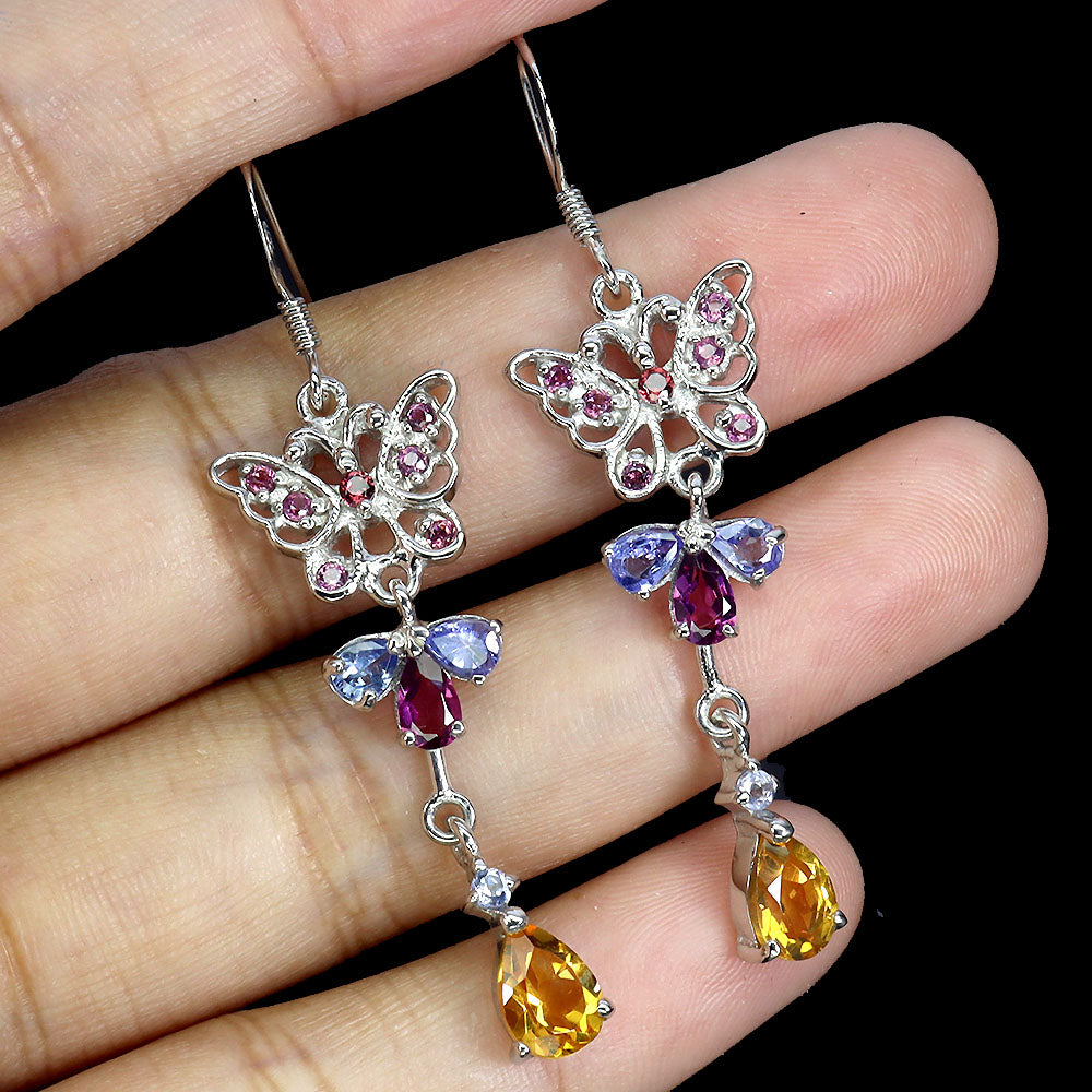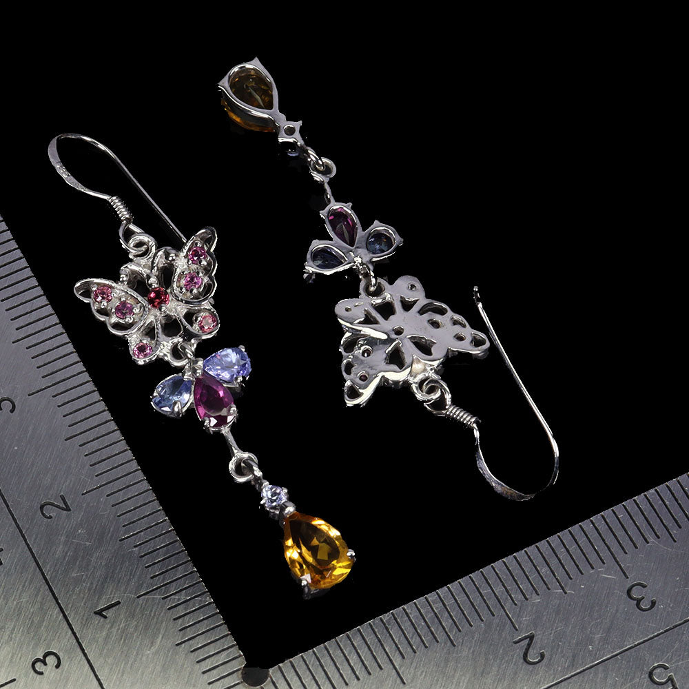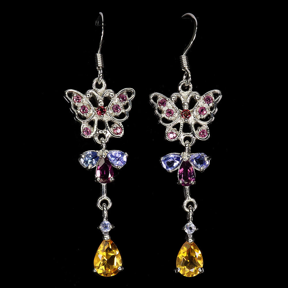 925 Sterling Silver Earrings Pear Citrine 7x5mm Tanzanite Gemstone Jewelry
