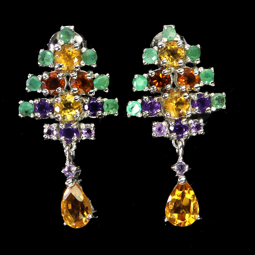 925 Sterling Silver Earrings Pear Citrine Amethyst Emerald Gemstone Jewelry