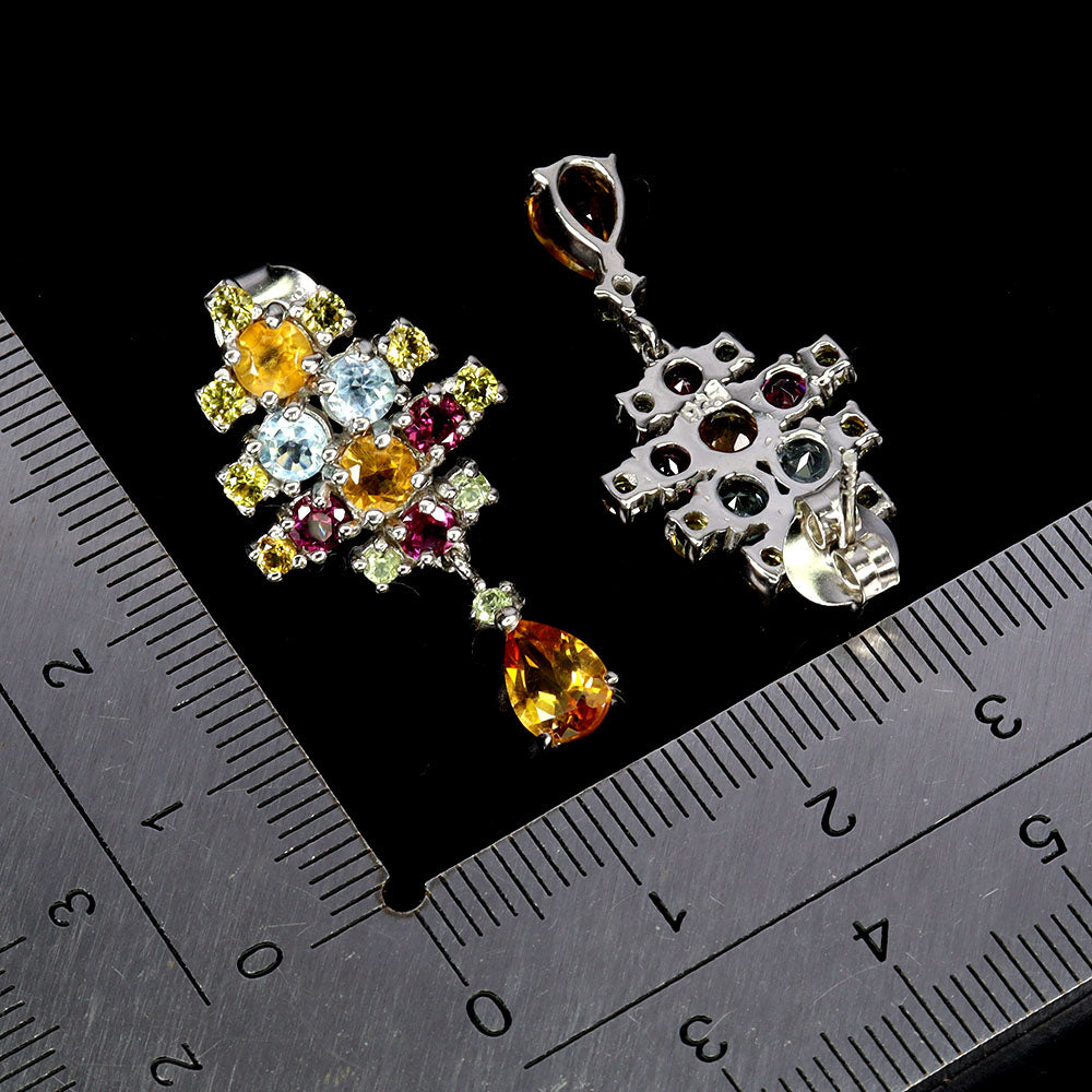 925 Sterling Silver Earrings Pear Citrine Aquamarine Sapphire Gemstone Jewelry