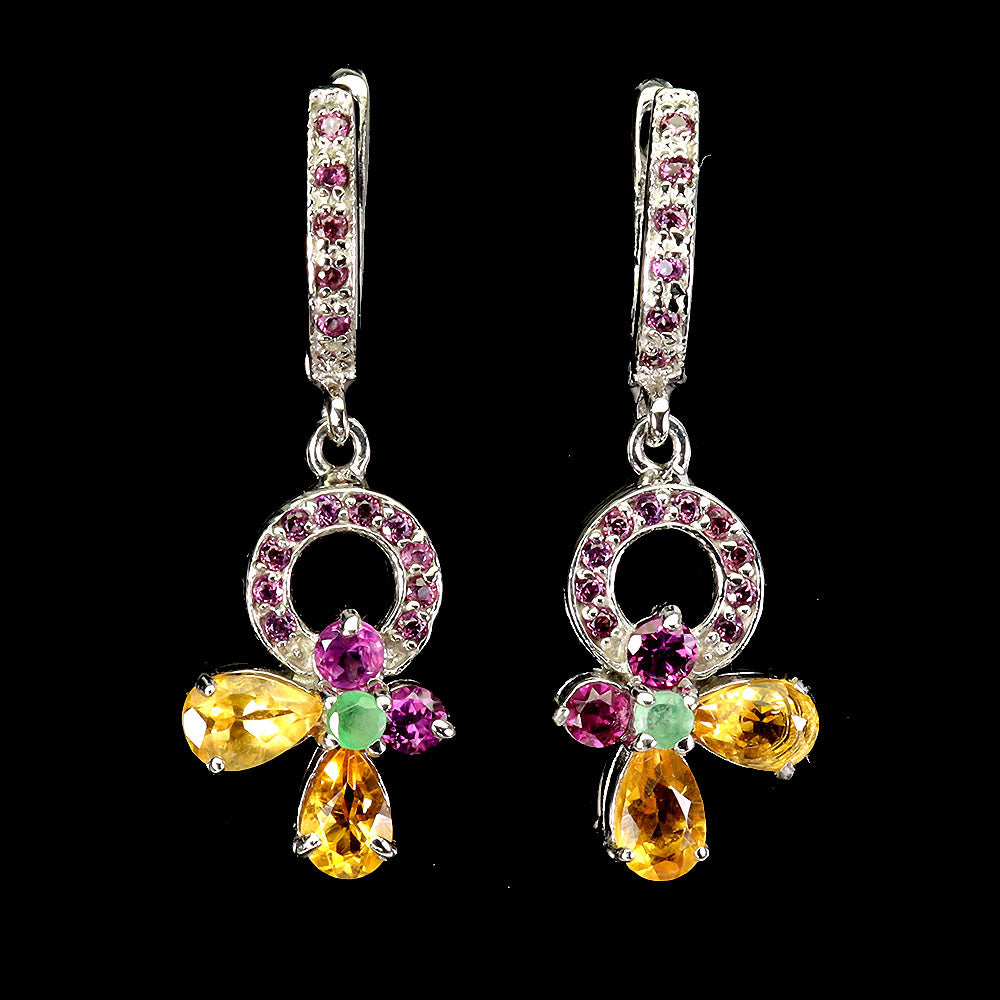 925 Sterling Silver Earrings Pear Citrine Emerald Rhodolite Gemstone Jewelry