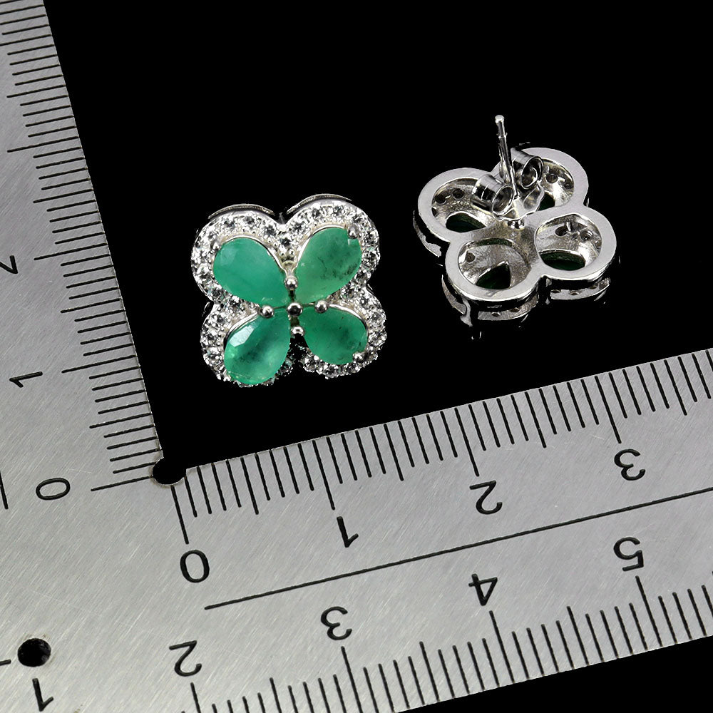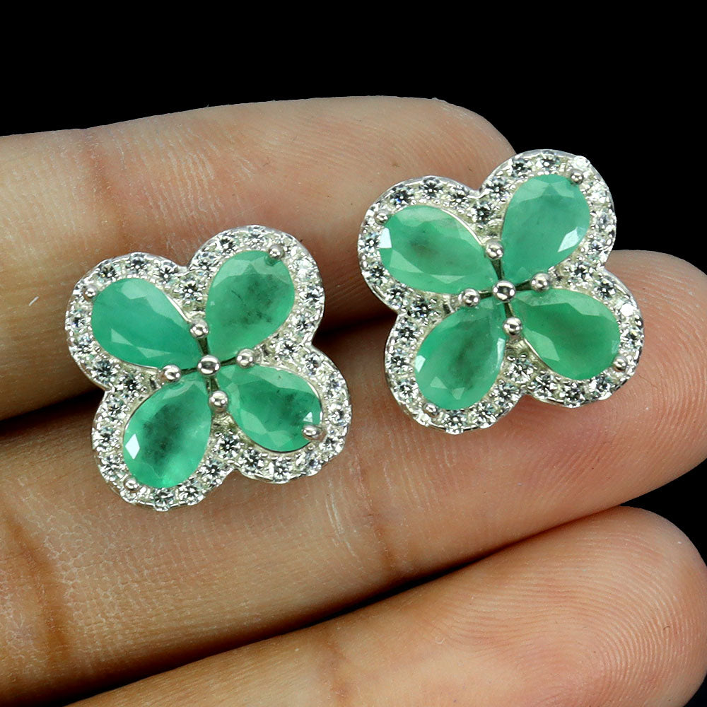 925 Sterling Silver Earrings Pear Emerald 6x4mm Flower Natural Gemstone Jewelry