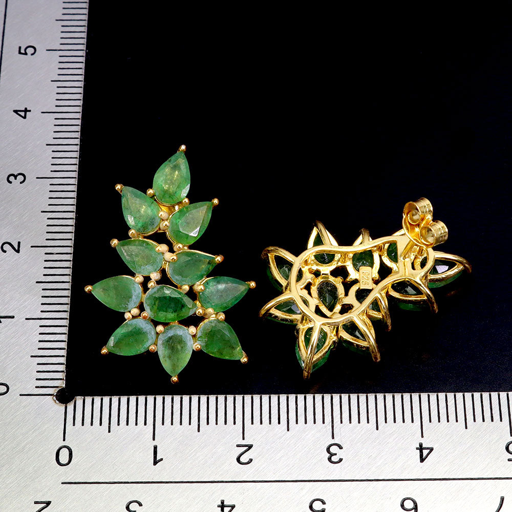 925 Sterling Silver Earrings Pear Emerald 6x4mm Natural Gemstone Jewelry