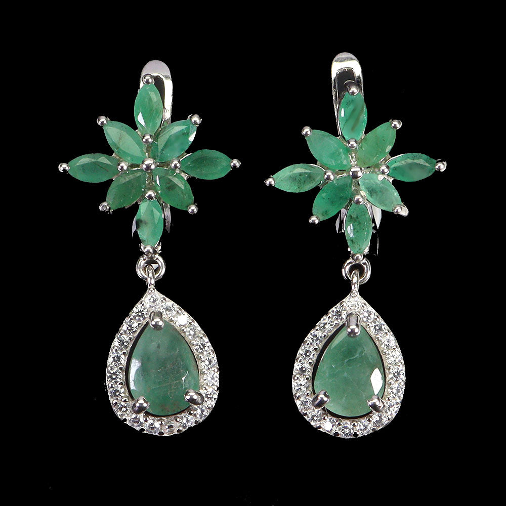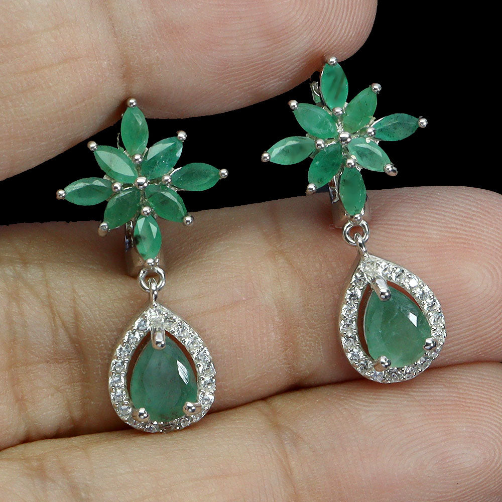 925 Sterling Silver Earrings Pear Emerald 7x5mm Natural Gemstone Jewelry