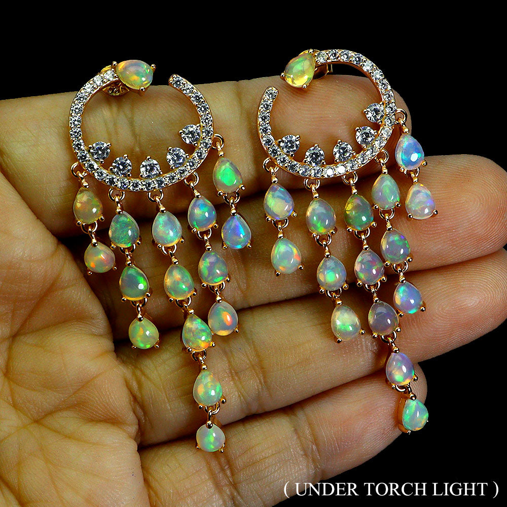 925 Sterling Silver Earrings Pear Fire Opal 5x4mm Natural Gemstone Jewelry