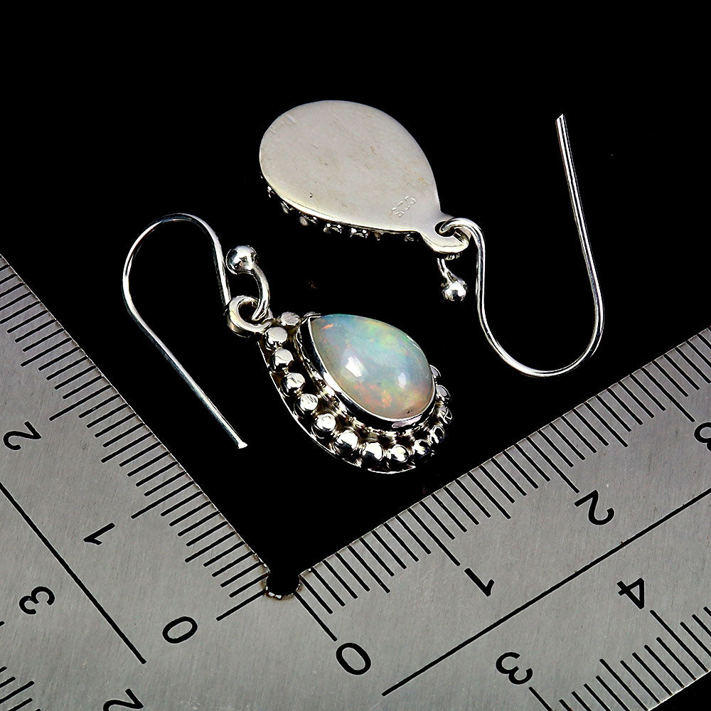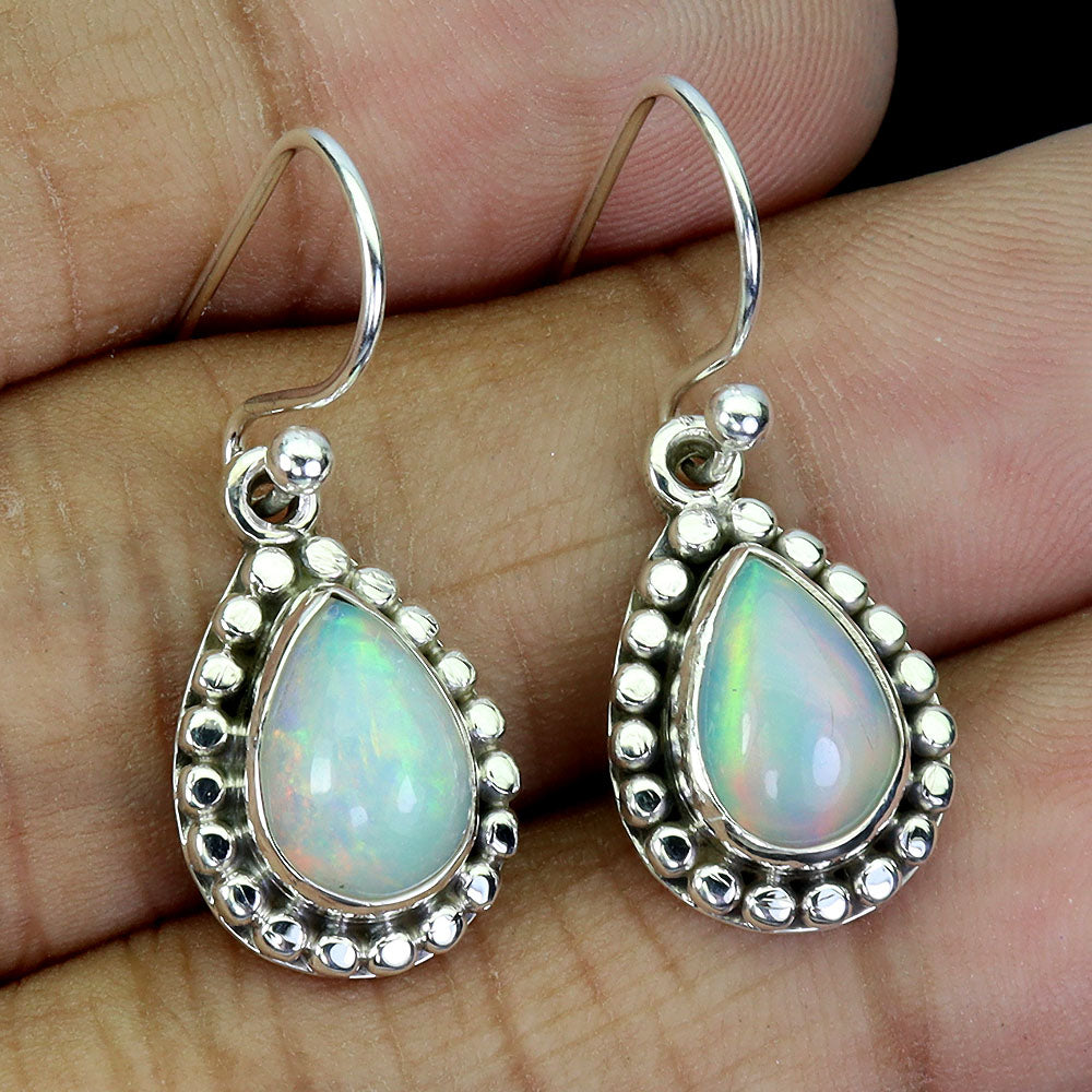 925 Sterling Silver Earrings Pear Fire Opal 9x6mm Natural Gemstone Jewelry