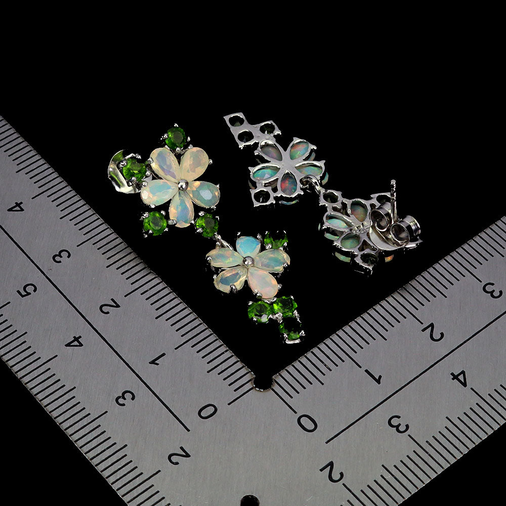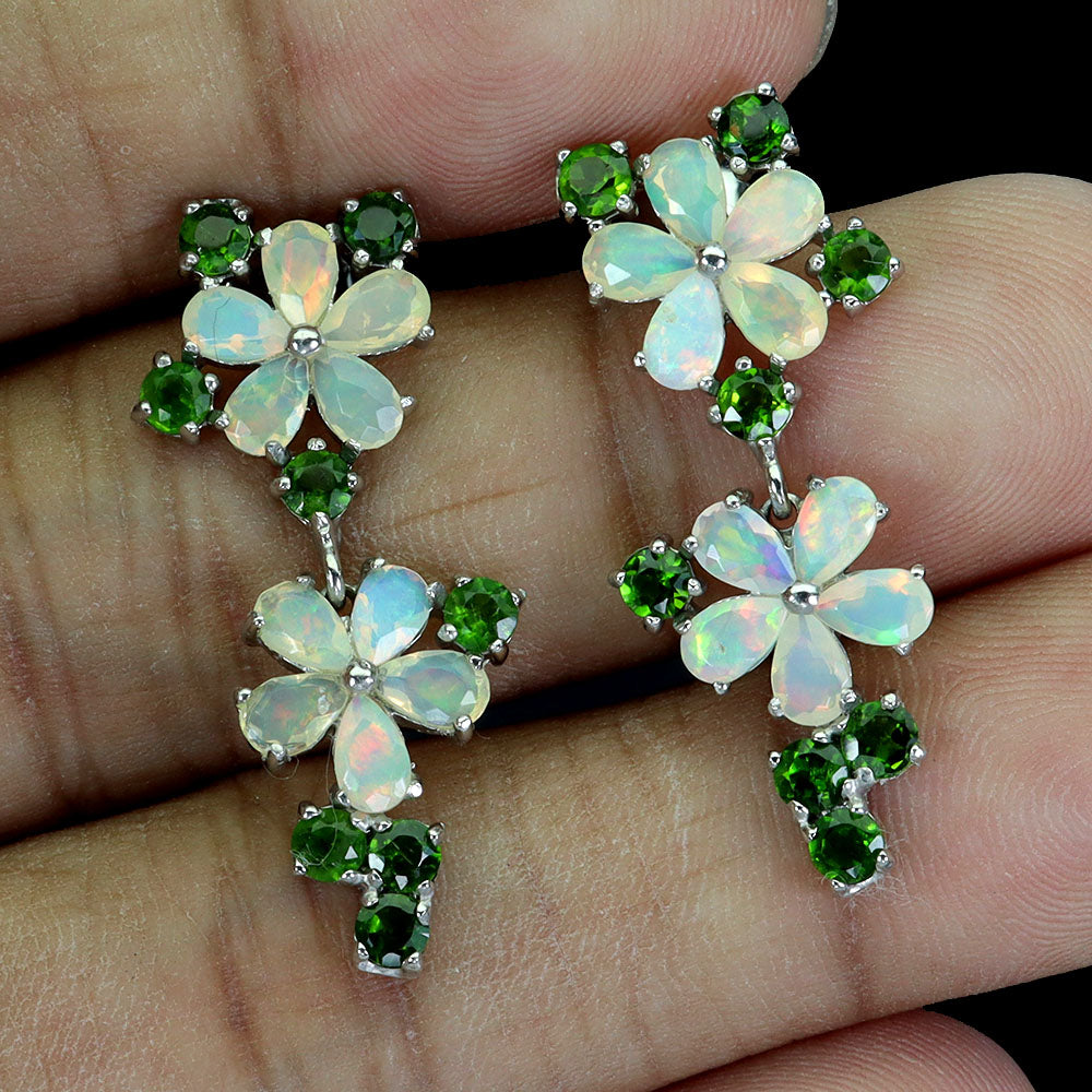 925 Sterling Silver Earrings Pear Fire Opal Chrome Diopside Gemstone Jewelry