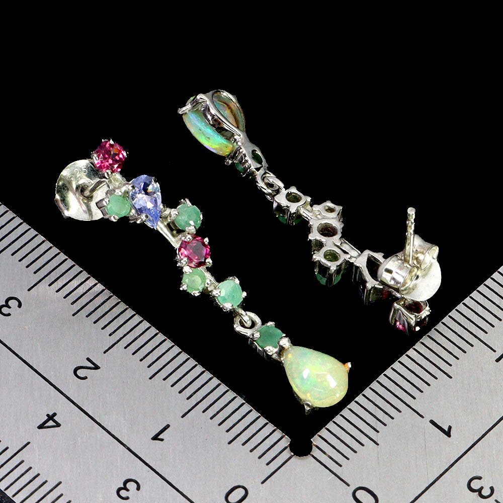 925 Sterling Silver Earrings Pear Fire Opal Emerald Tanzanite Gemstone Jewelry
