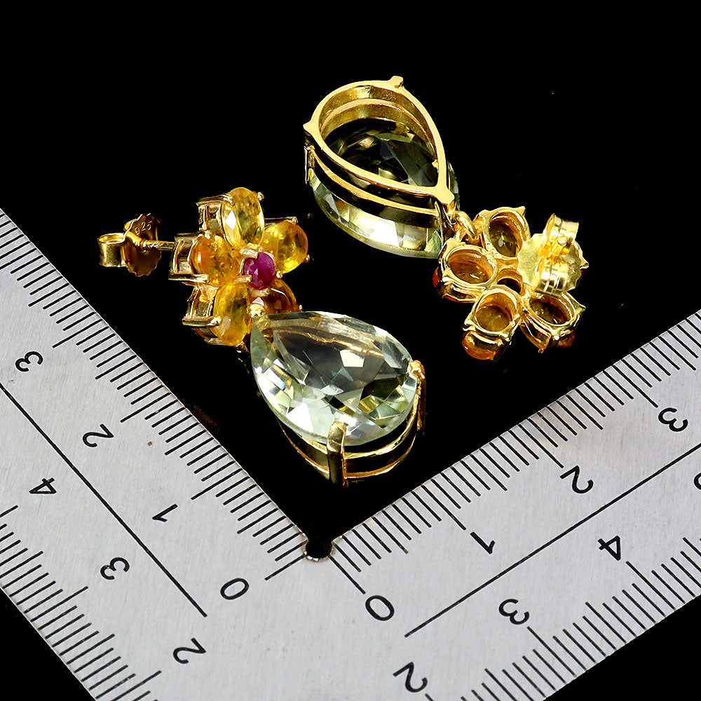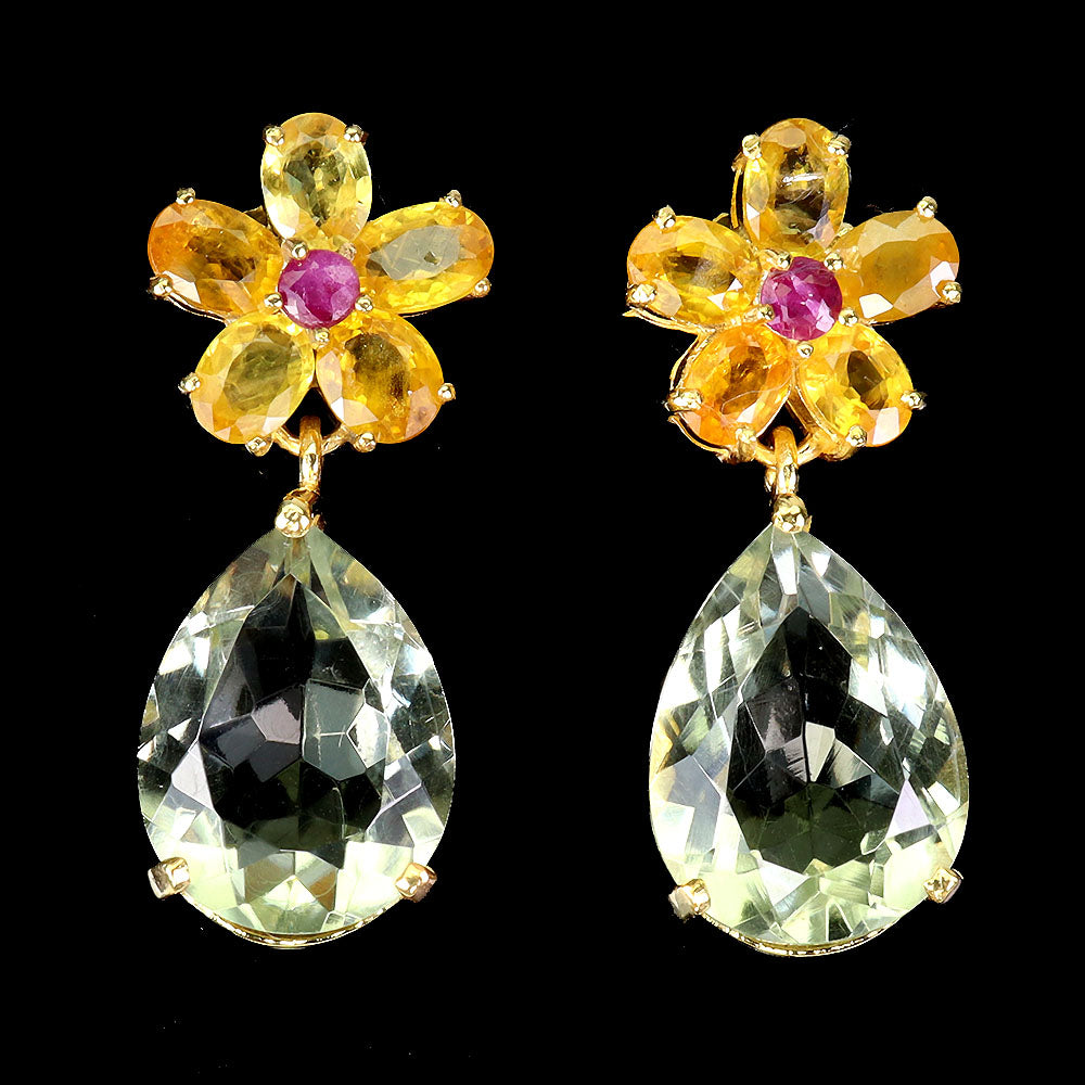 925 Sterling Silver Earrings Pear Green Amethyst 16x12mm Ruby Gemstone Jewelry