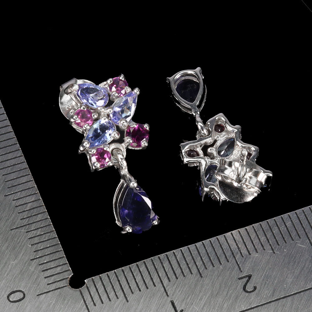 925 Sterling Silver Earrings Pear Iolite 7x5mm Garnet Tanzanite Gemstone Jewelry