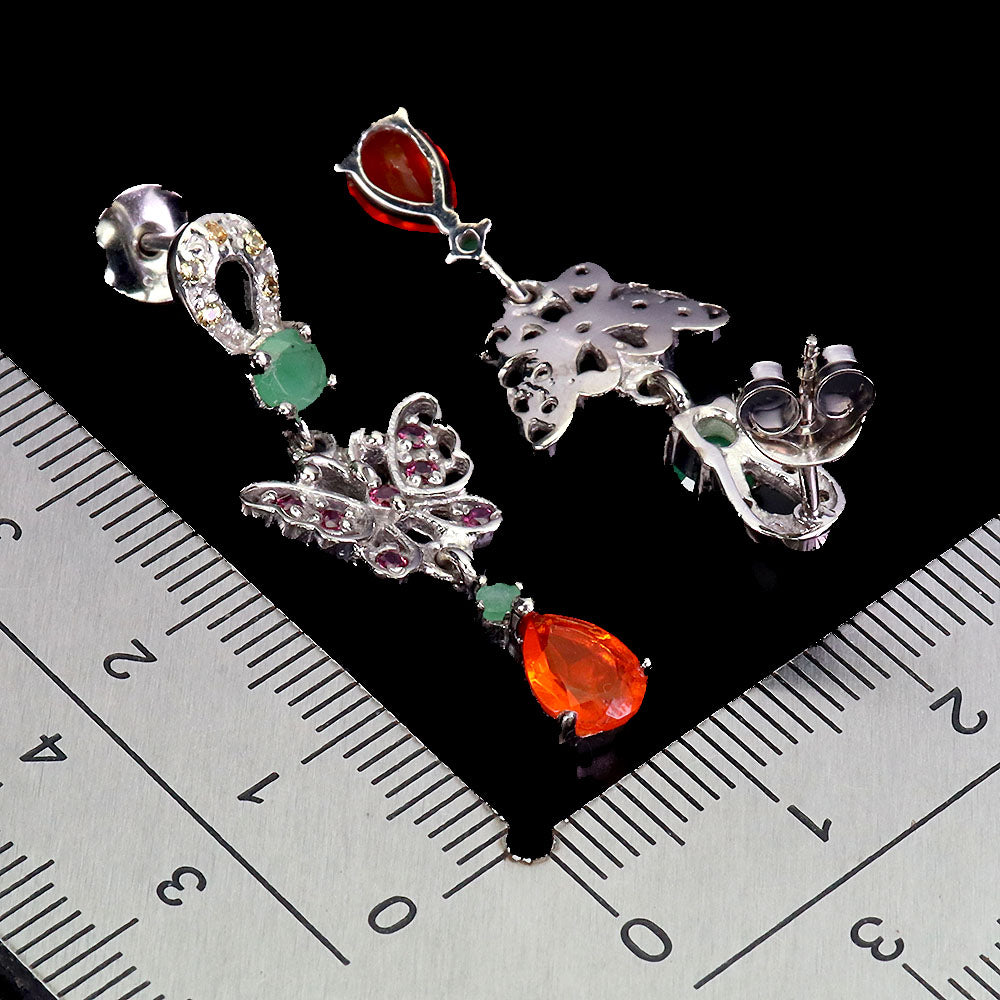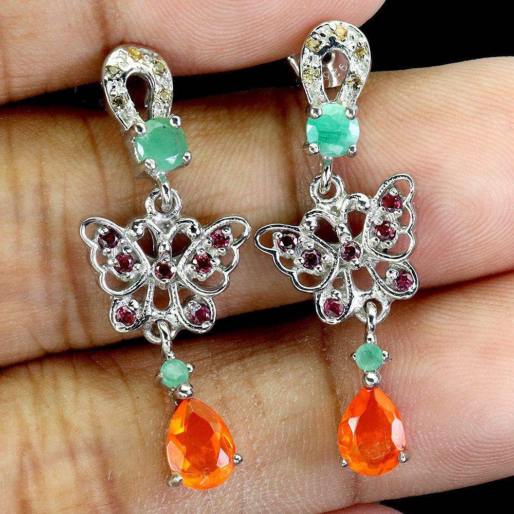 925 Sterling Silver Earrings Pear Orange Opal Emerald Butterfly Gemstone Jewelry