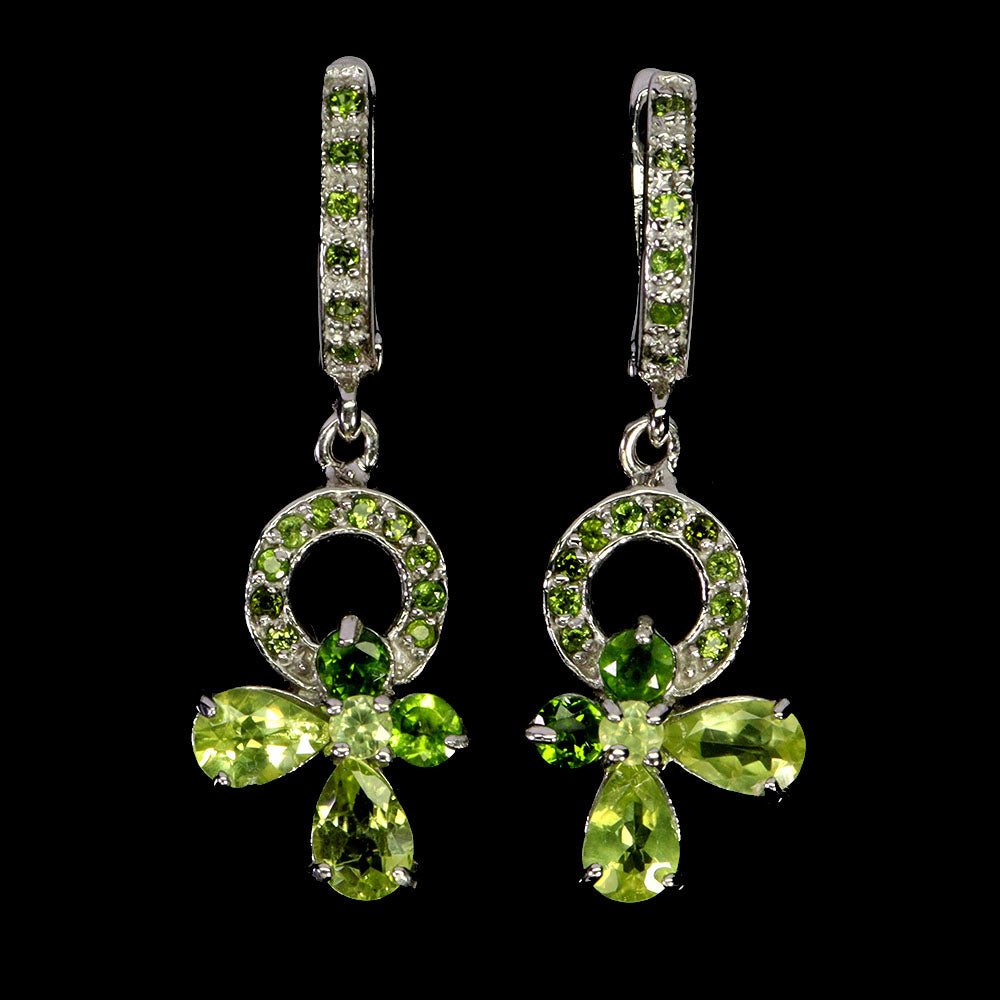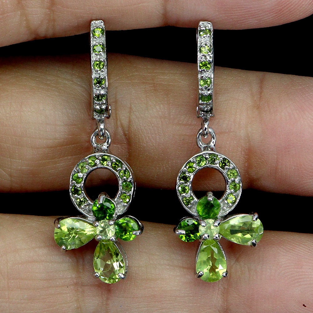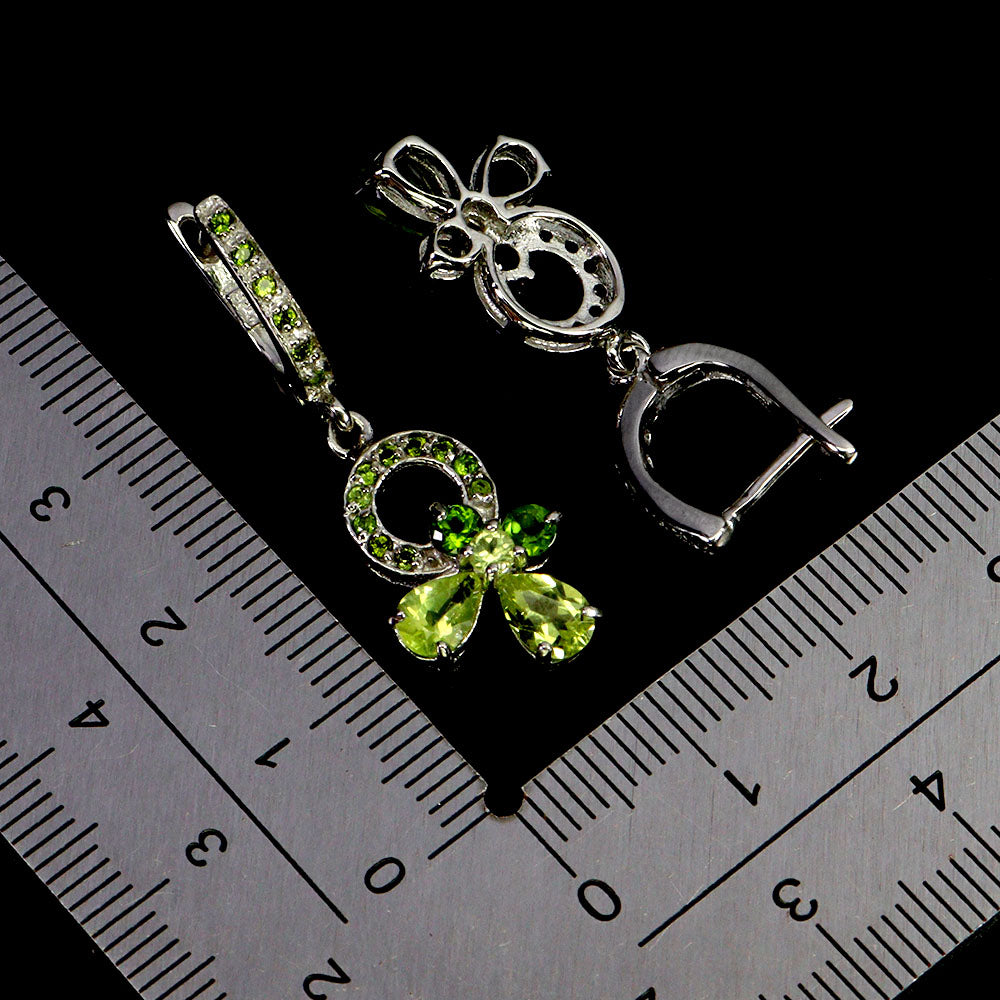 925 Sterling Silver Earrings Pear Peridot 6x4mm Chrome Diopside Gemstone Jewelry