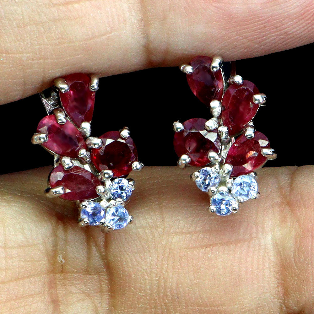 925 Sterling Silver Earrings Pear Ruby 5x3mm Tanzanite Natural Gemstone Jewelry