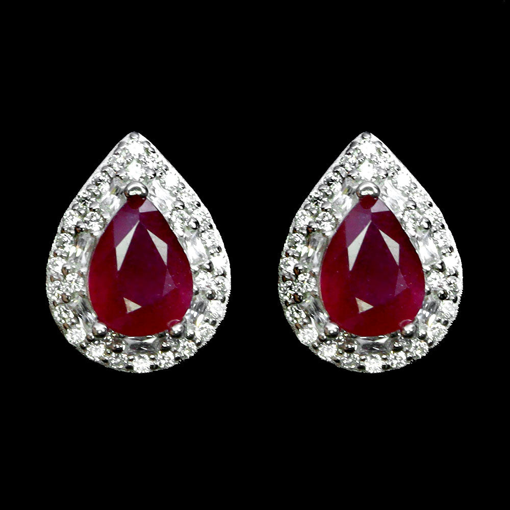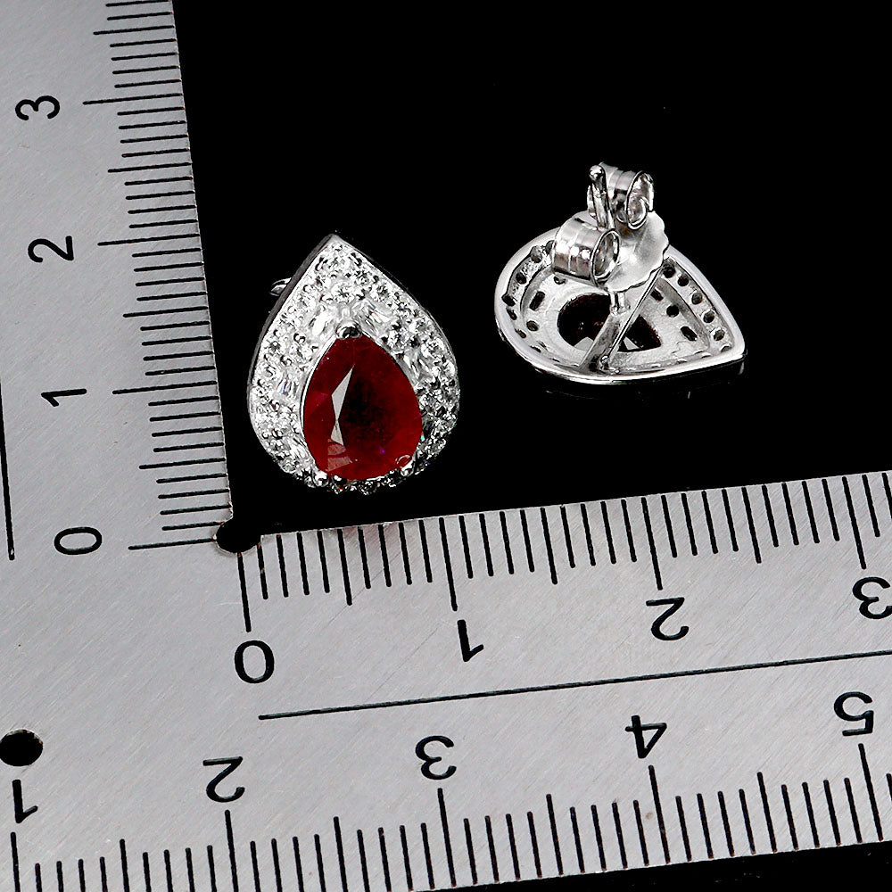 925 Sterling Silver Earrings Pear Ruby 7x5mm Natural Gemstone Jewelry