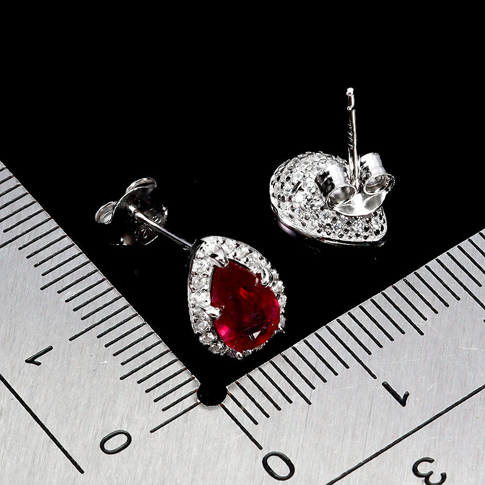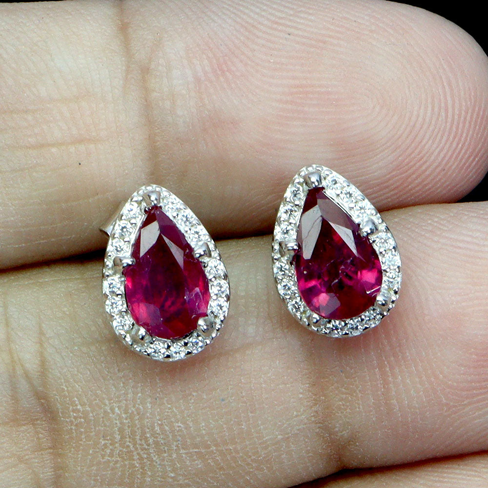 925 Sterling Silver Earrings Pear Ruby 7x5mm Natural Gemstone Jewelry
