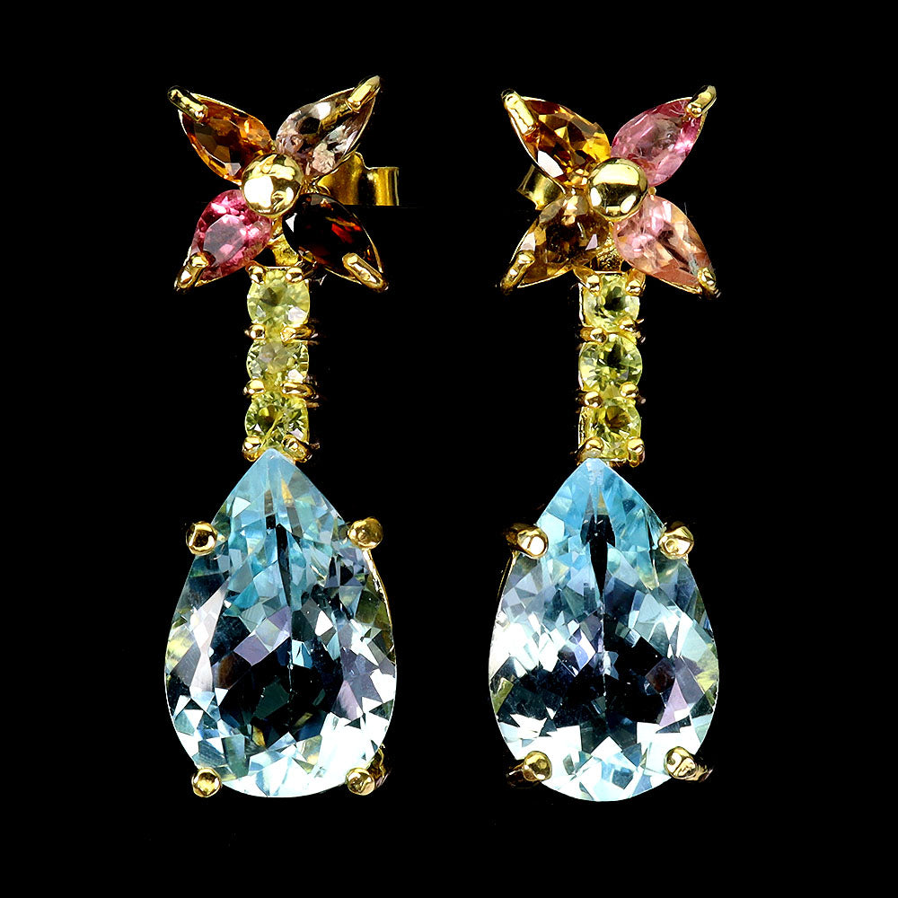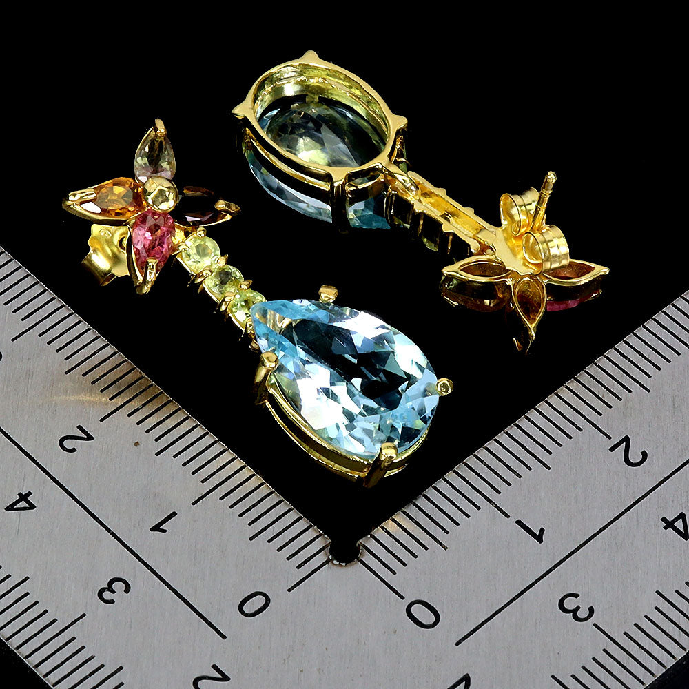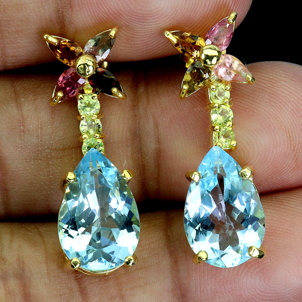 925 Sterling Silver Earrings Pear Sky Blue Topaz 15x9mm Peridot Gemstone Jewelry