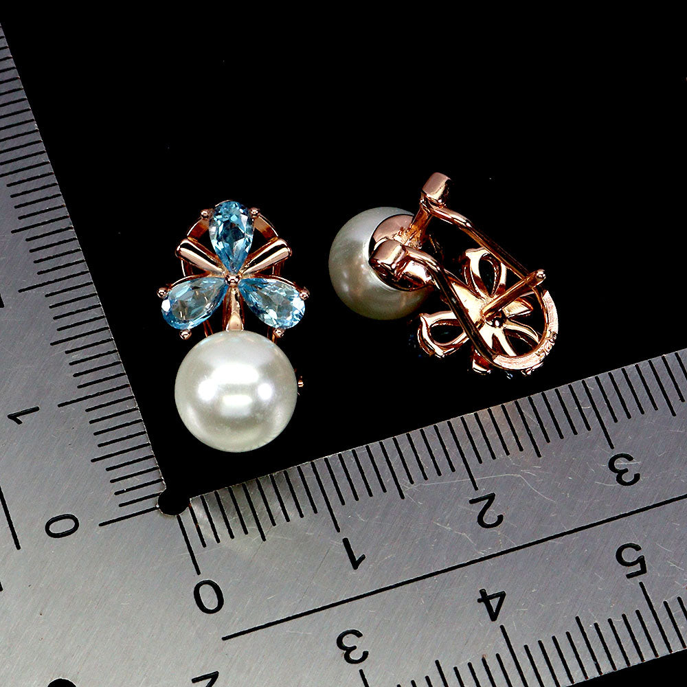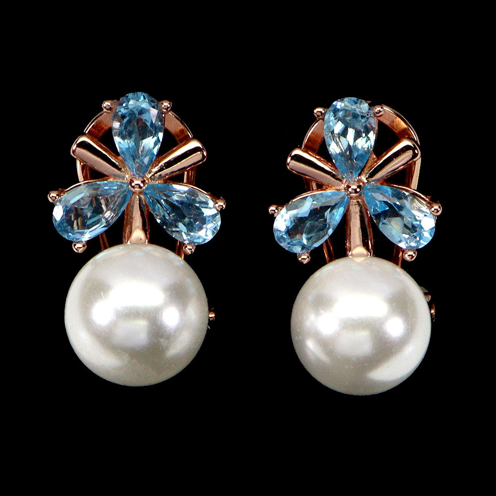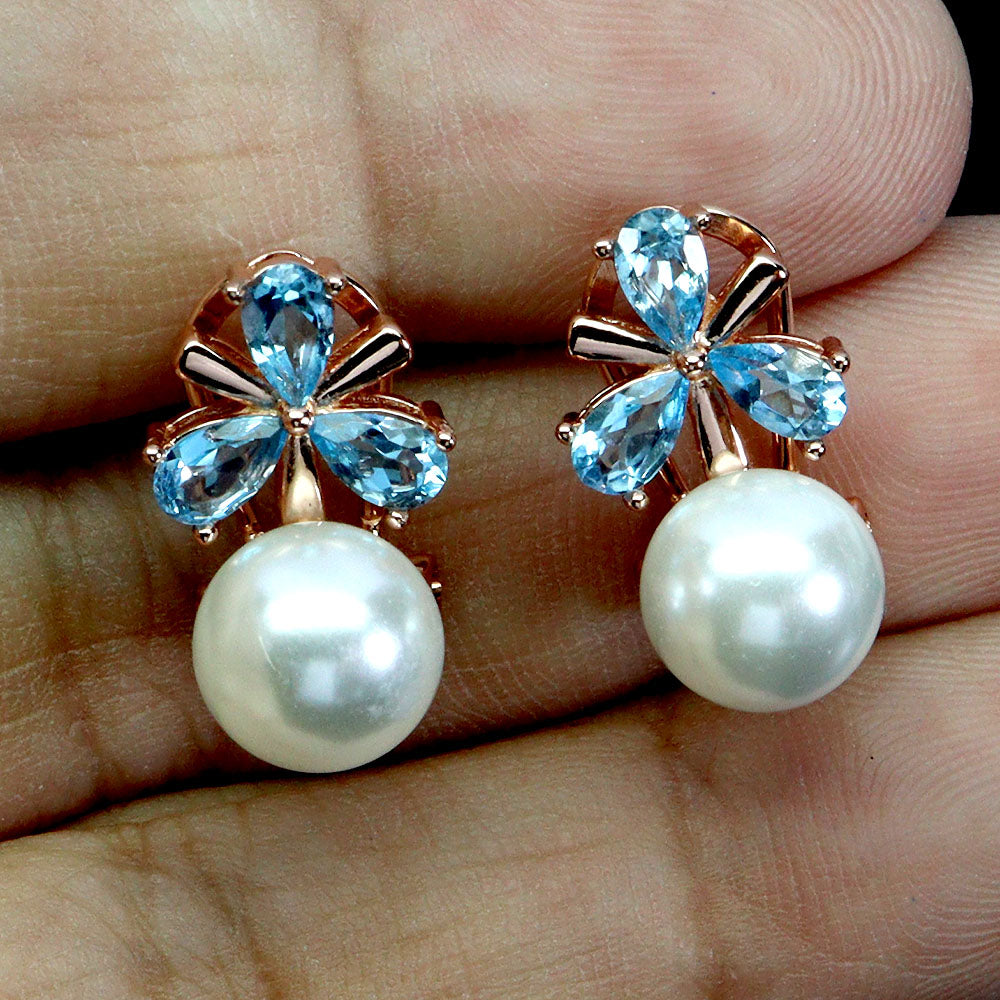 925 Sterling Silver Earrings Pear Swiss Blue Topaz 5x3mm Mop Gemstone Jewelry