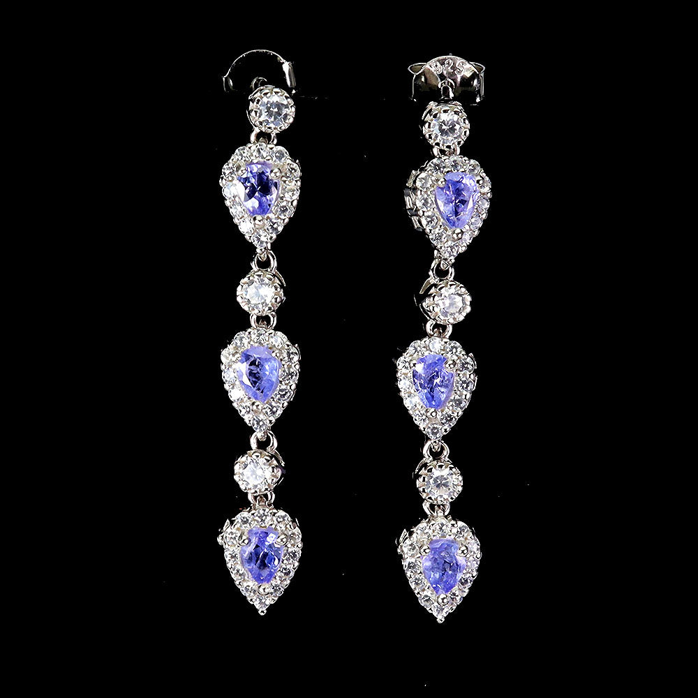 925 Sterling Silver Earrings Pear Tanzanite 4x3mm Natural Gemstone Jewelry
