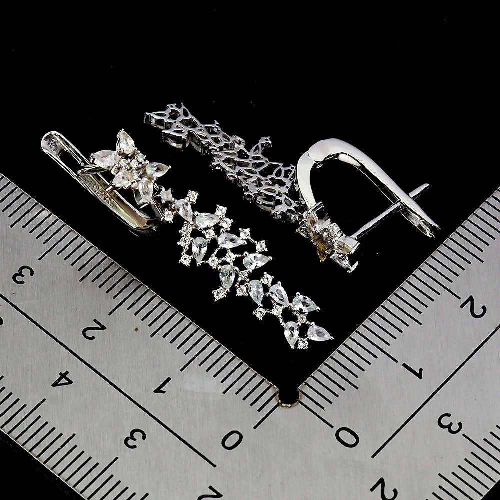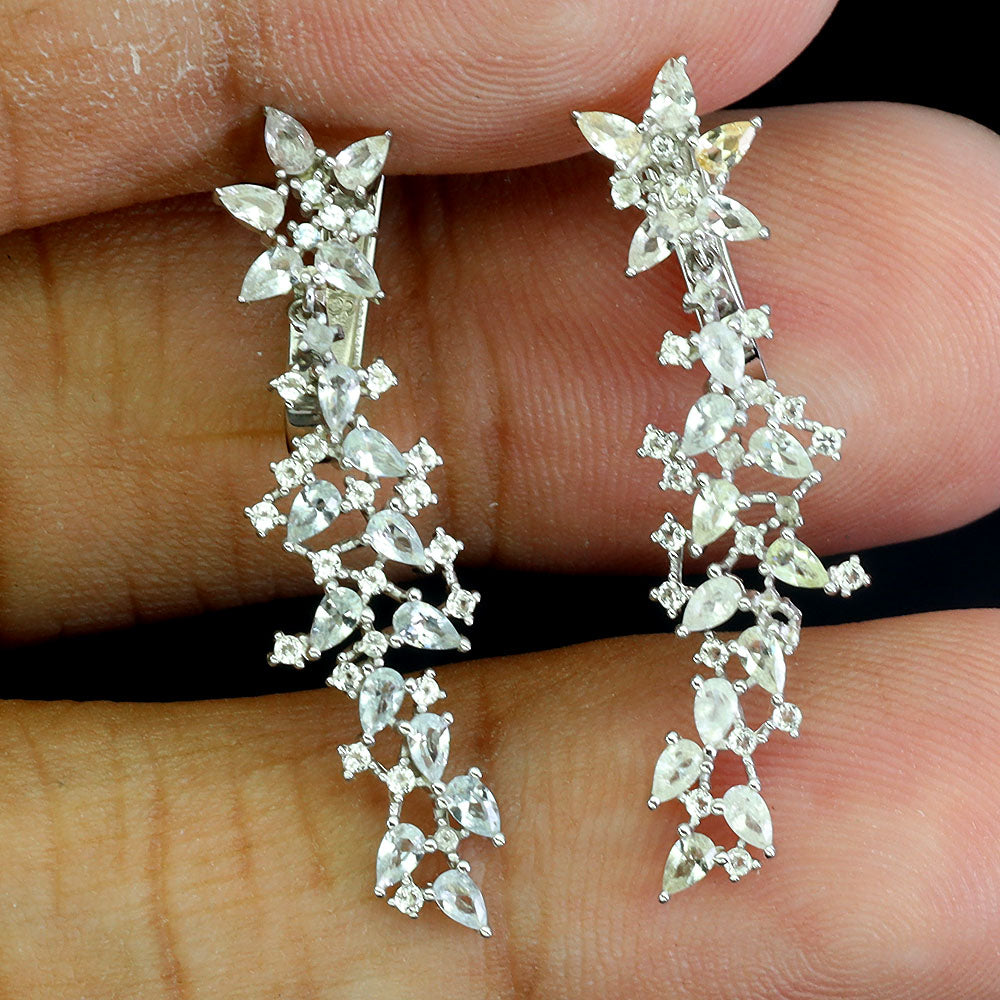 925 Sterling Silver Earrings Pear White Sapphire Ceylon Natural Gemstone Jewelry