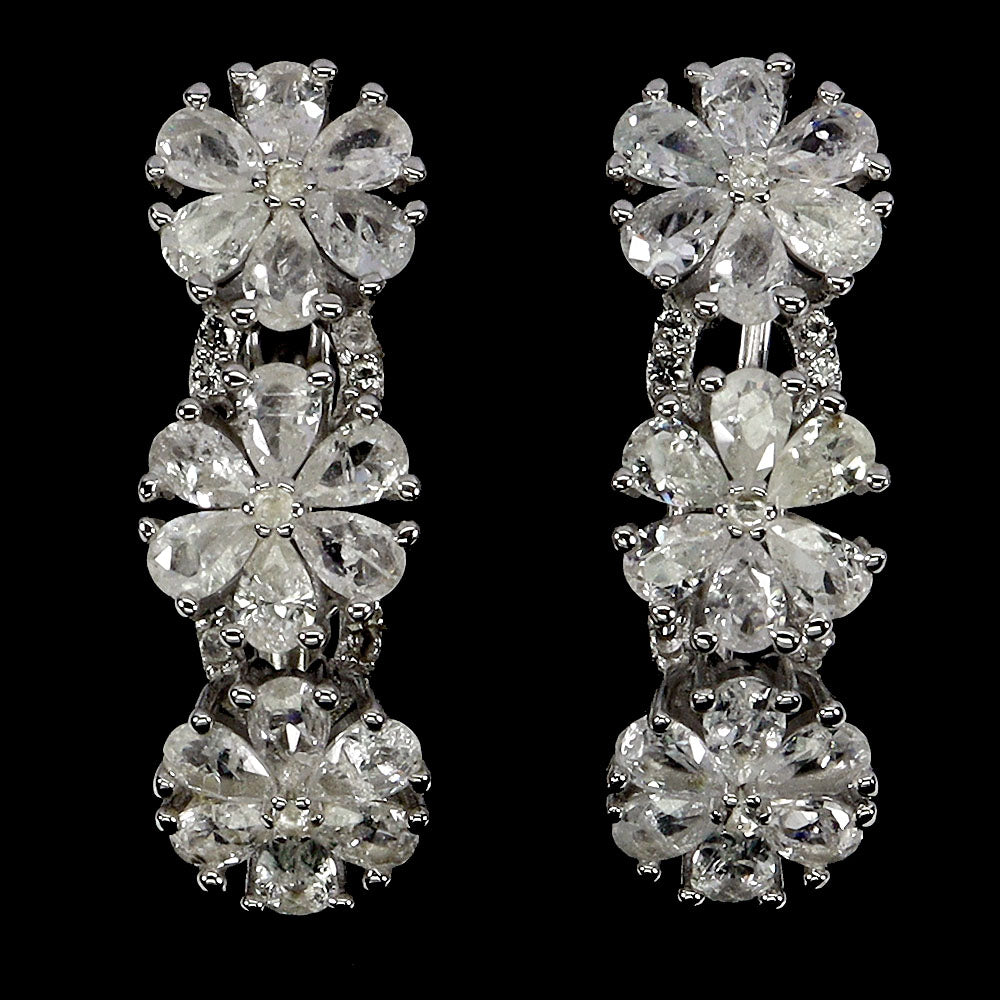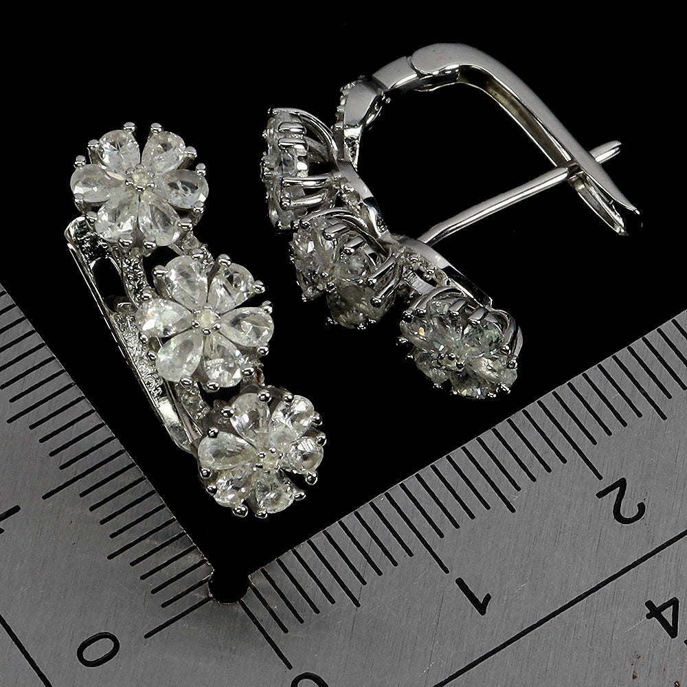 925 Sterling Silver Earrings Pear White Sapphire Ceylon Natural Gemstone Jewelry