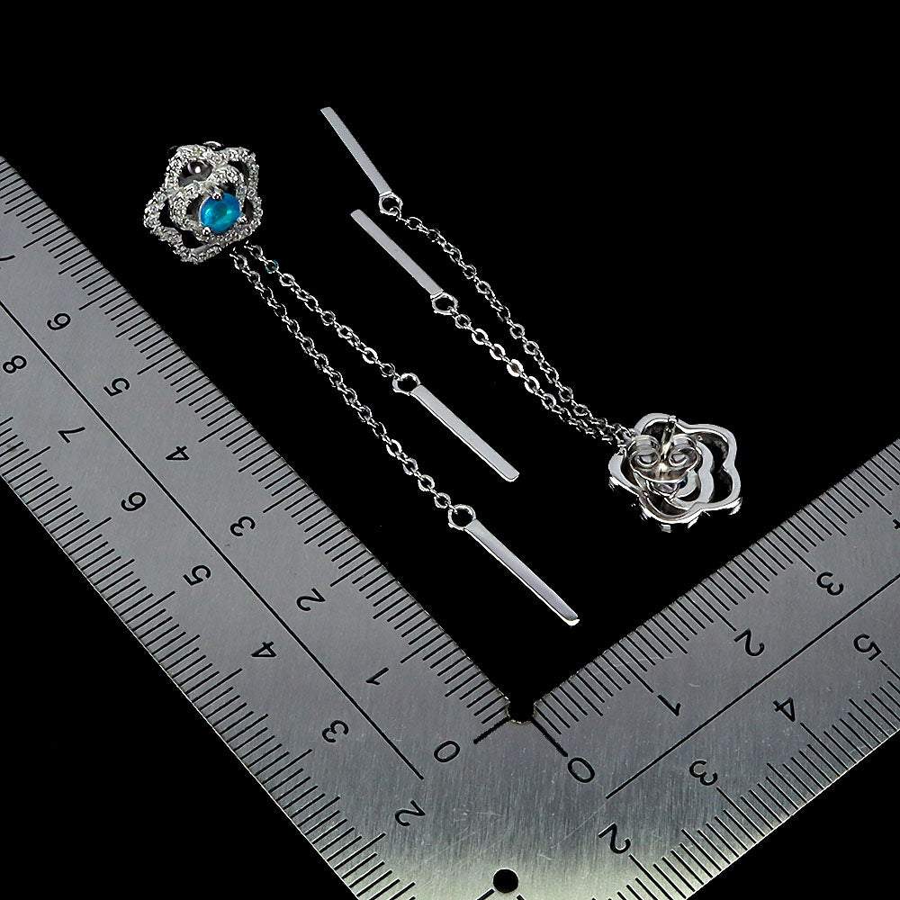 925 Sterling Silver Earrings Round Blue Opal 4mm Flower Natural Gemstone Jewelry