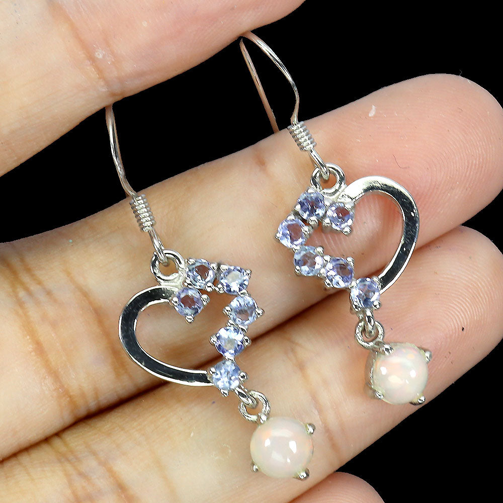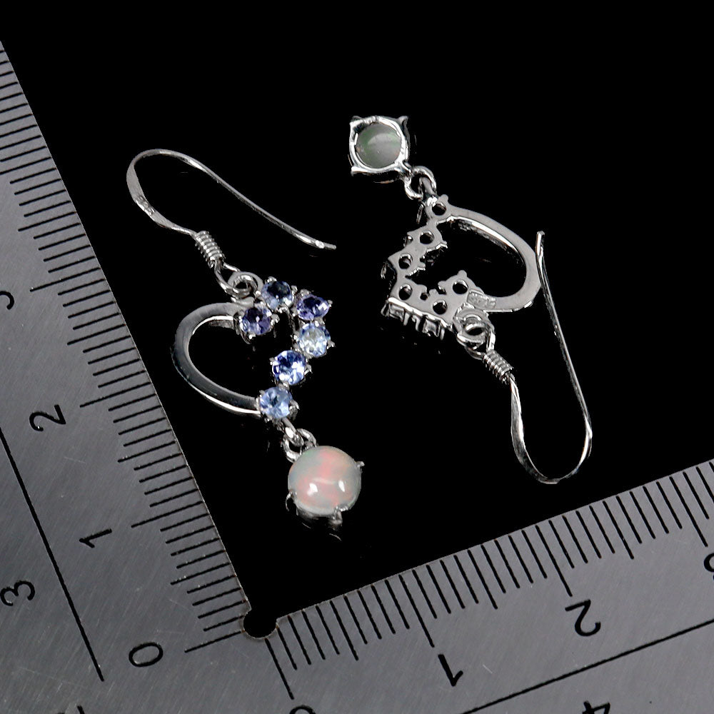 925 Sterling Silver Earrings Round Fire Opal 5mm Tanzanite Gemstone Jewelry