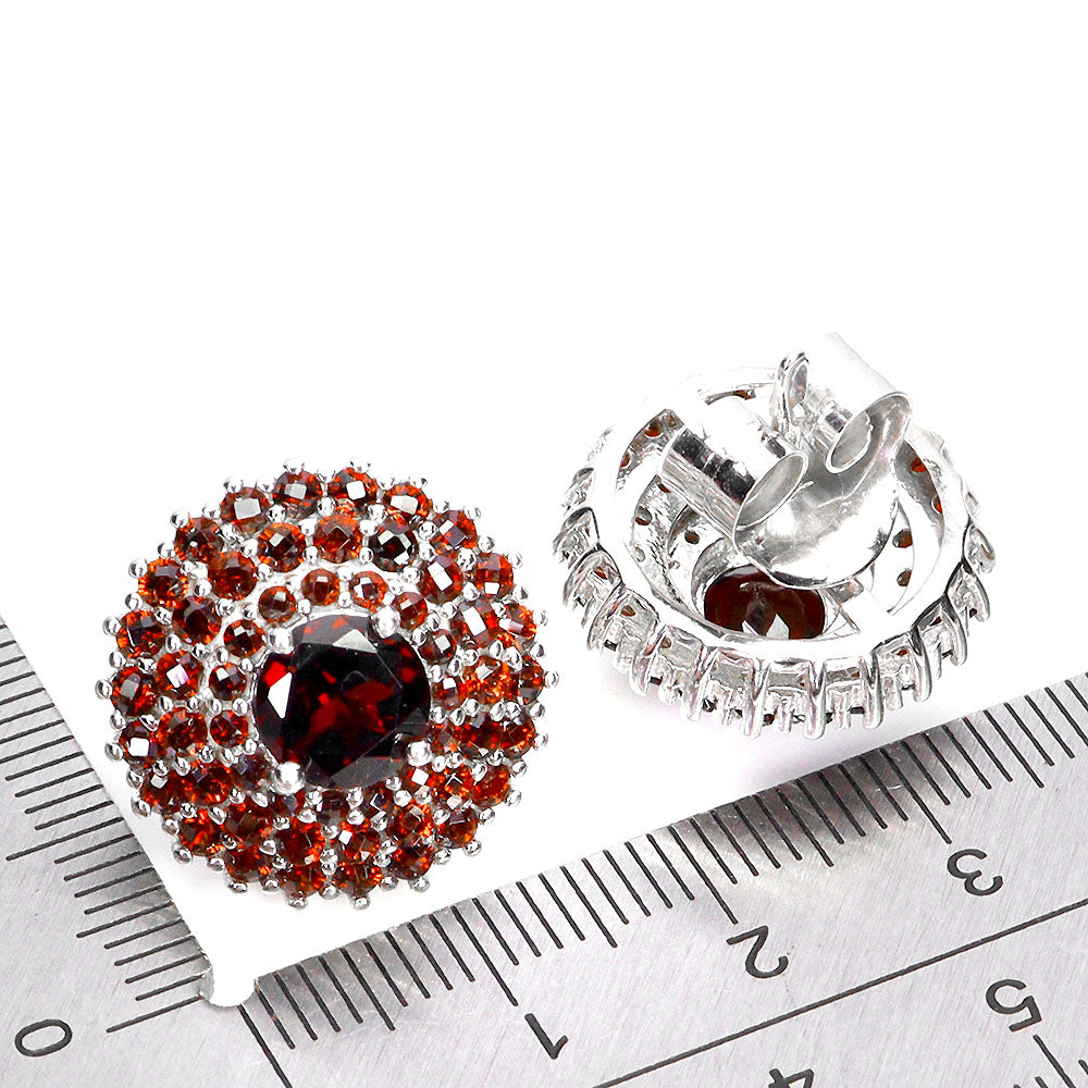 925 Sterling Silver Earrings Round Mozambique Garnet 7mm Gemstone Jewelry