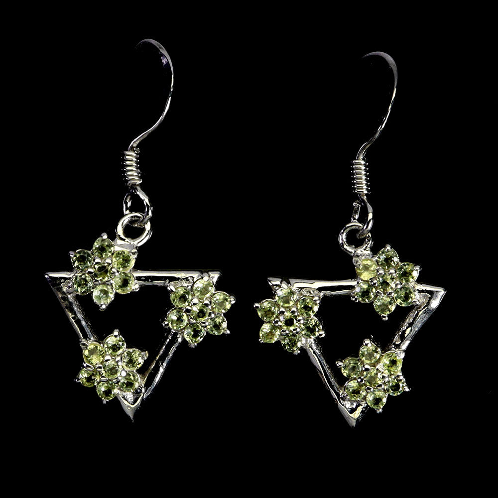 925 Sterling Silver Earrings Round Peridot 1.5mm Natural Gemstone Jewelry