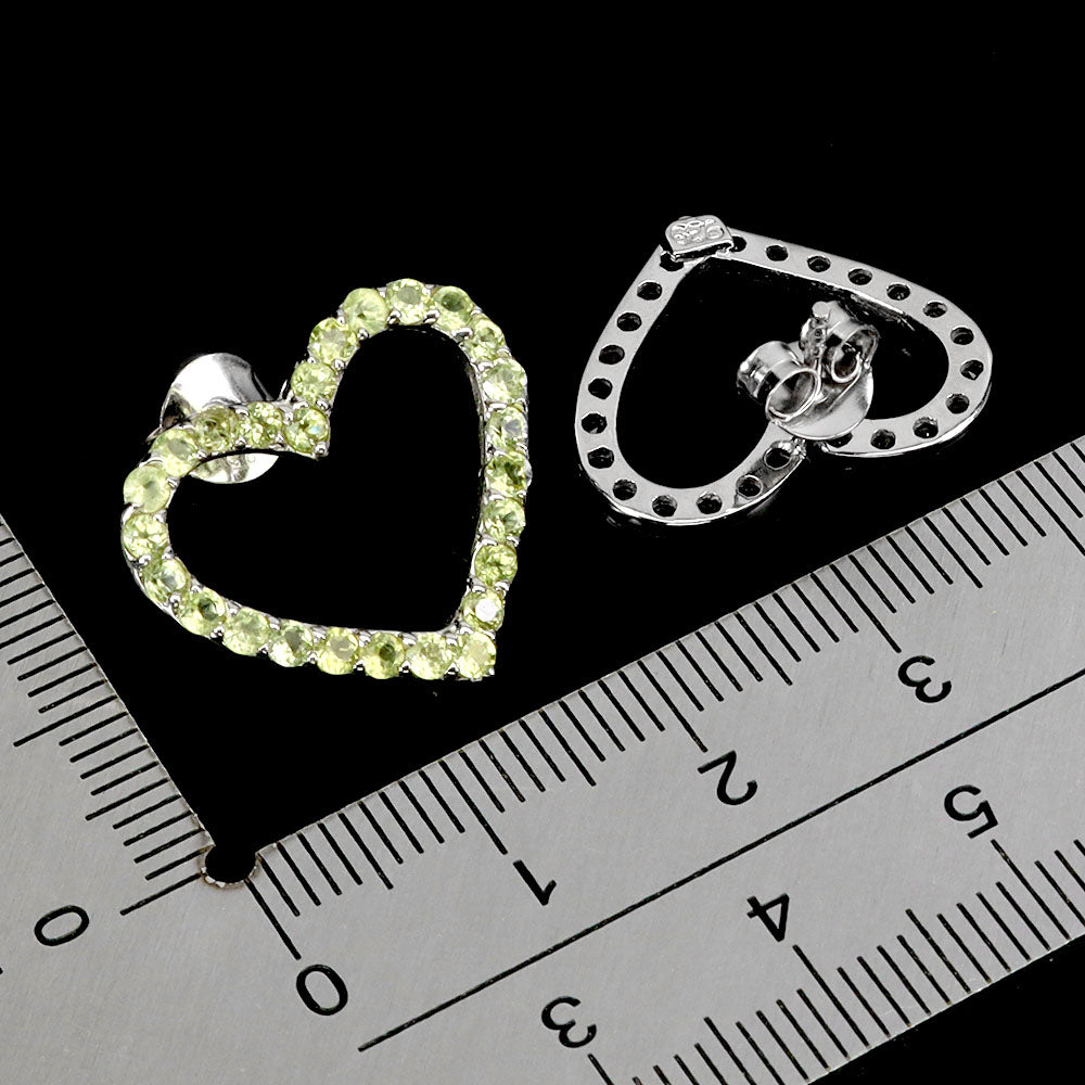 925 Sterling Silver Earrings Round Peridot Heart Natural Gemstone Jewelry
