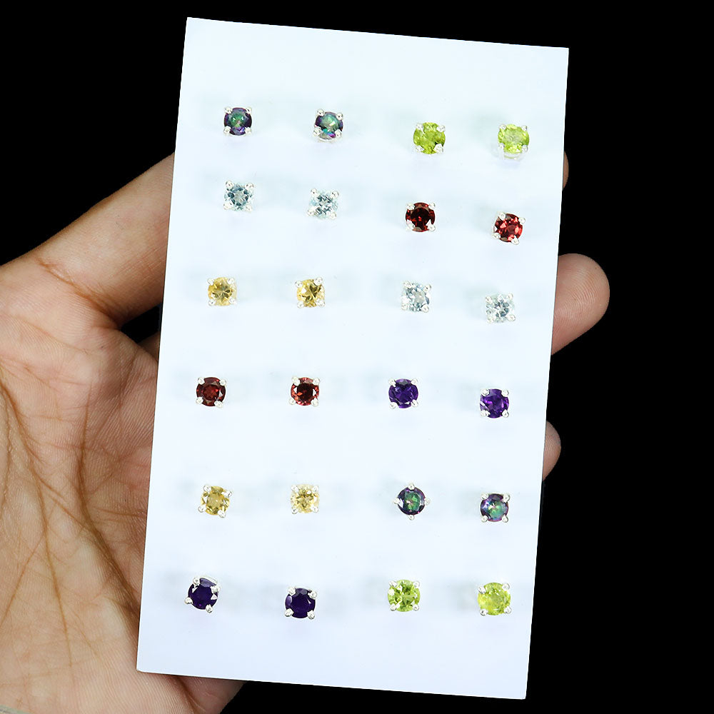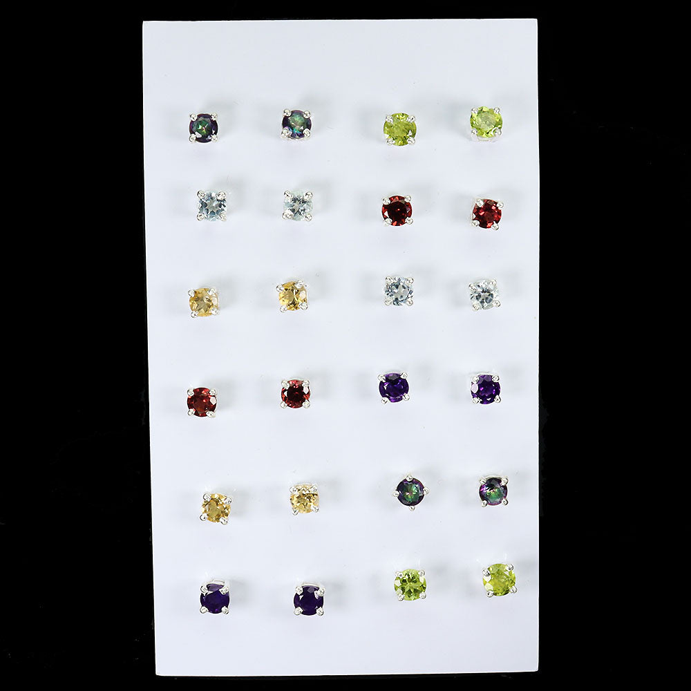925 Sterling Silver Earrings Round Peridot Topaz Amethyst 4mm 12pairs Birthstone