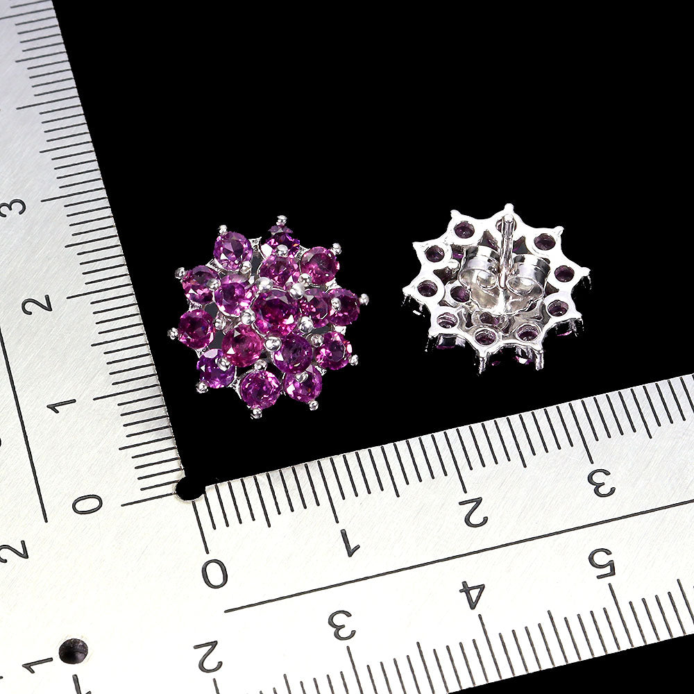 925 Sterling Silver Earrings Round Rhodolite Garnet 4mm Natural Gemstone Jewelry