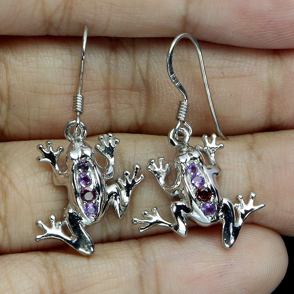 925 Sterling Silver Earrings Round Rhodolite Garnet Amethyst Gemstone Jewelry